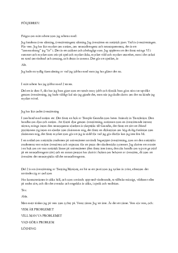 När jag läser dom andras följe-brev så tänker jag på: