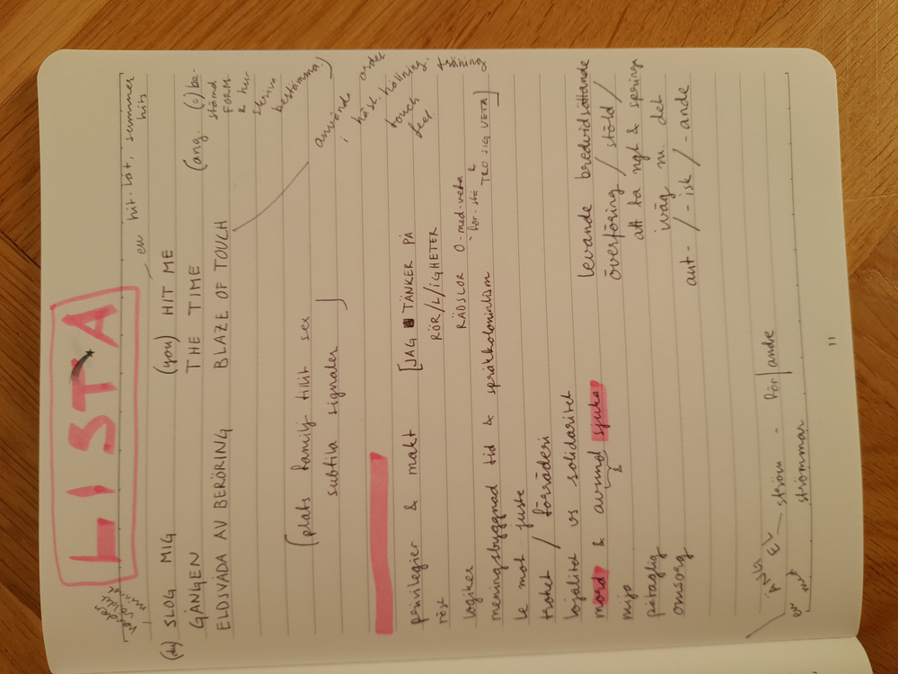 Att skriva för en målgrupp. Brand skrev till mig: skriv enklare. Den lättlästa texten. Kan det finnas en tillåtelse till ett enklare språk, vad skulle det vara. Kontra att behålla ord som kanske är svåra (franskans historia i svenskan som jag tänker kanske är en historia av klass, bildning, kunglighet (matlagning i specifika kretsar), smak, etc men vet ej) av anledning ? 1, pga språk och språkets känsla tex något händer i kombon av snuten och repression kanske som jag gillar 2, kontext för text att tex vilja bli tagen som seriös