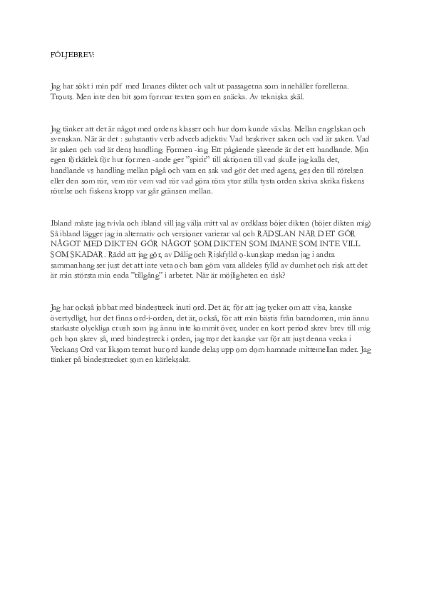 ATT JAG SKÄMS FÖR ATT SKRIVA HONOM FÖLJA HONOM ERKÄNNA HONOM SOM FINNANDES I EN KÄRLEKSFÖRKLARING