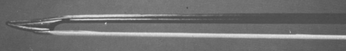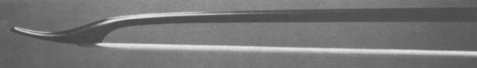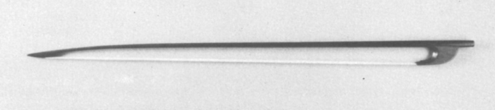 During the first half of the 18th century, there was a tendency to increase the length of the bow to 66-72 cm, augmenting at the same time the weight (45-55 grams). The previous pike’s (picture a) head was replaced by a more elevated head with a swan bill profile (picture b). The hair ribbon measured around 8 mm. This longer bow was more suitable for some musical and technical demands of the new century, such as the Italian cantabile style or the triple-stopping in some Leclair sonatas6.