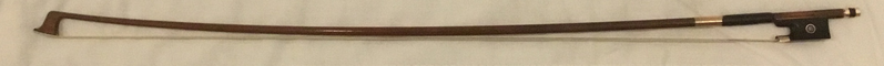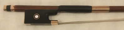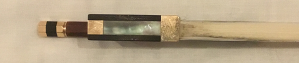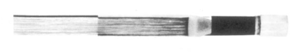 Between 1880 and 1890, François Tourte, a Parisian bow maker, introduced some new elements to the violin bow that, as we have seen, had been in constant change during the whole century. Those features included a greater length (around 74-75 cm), a more pronounced concave curve (see picture l), a heavier weight (57-60 grams), a greater strength, a better distribution of the weight along the stick, and a closed, rectangular frog with a mother-of-pearl slide covering the hair and a gold or silver ferrule to keep the broader hair ribbon (of 11 mm) flat32 (see picture m). This bow was the result of a long evolution and it became the first design that served as a model, that is to say, it turned to be the standard bow from then until today. Even though it was finally adopted by all the violin schools, the older transitional design was still made and in use well into the 19th century (see a litograph from Karl Begas from around 1820 of Paganini holding a classical bow here).