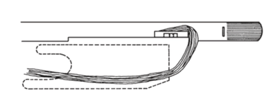 The aforementioned development starts around 1625 due to the necessity of string players, that had considerably improved their technique, of playing with more sophisticated bows to get “a clearer articulation, increased volume and a more complex sound”4. The bows from that period, called short bows by Robert Seletsky, were made of snakewood and used to weigh from 36 to 44 grams. Their length, around 61 cm, was similar to the length of the violin. The equal proportion between instrument and bow was common also for the rest of the string instruments: the cello bow was longer than it is now, being closer to the size of the instrument. The bow stick was slightly convex at the point, so there was enough space between the hair and the stick. In the first half of the 17th century, the way of connecting the hair with the bow stick changed considerably. The hair was no longer knotted at the tip (as the image c shows) and wrapped by another piece, but was introduced inside the head through a mortise and then knotted and curled inside. Something similar functioned at the frog: the hair was introduced into the stick and a removable frog was kept there by the tension of the hair. This constitutes the so-called clip-in system5(image d). This short bow, as we will discuss later, is often linked with the French dance style.