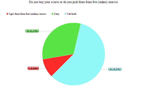 Regarding the historical correctness as an important reason to choose for an edition, it is interesting to see how many people regularly pick their scores from free (online) sources where historical background is much more difficult to verify. Most of the violinists do buy their scores but also use the free online access to many scores on the web (59 %). 10 % is using mainly free online sources to pick their editions. It seems that in practise ‘being Urtext’ is perhaps a bit less important compared to accessibility, availability and price (Urtext editions are not available for free at online sources) than the mentioning of this fact in the questionnaire suggests.