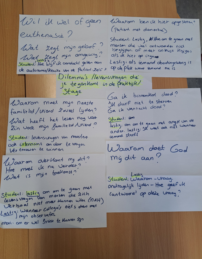 Daarin is vervolgens per klas een focusgesprek geweest over: welke levensvragen vind jij belangrijk én lastig in contact met patiënten?