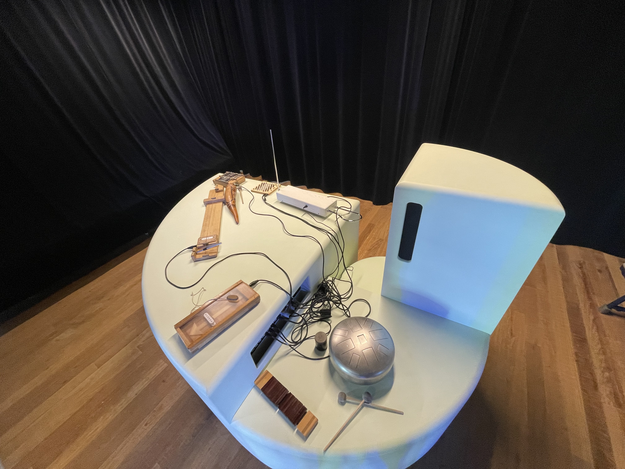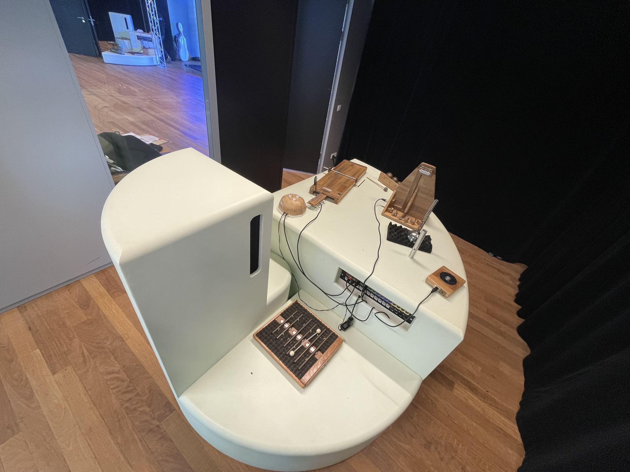 After warming up together, we divided the group into four smaller groups and let them go into each room to discover the different instruments that were placed on a ‘planet’. First, SoundLAB's workshop leader gave the participants some instructions on how the instruments worked, and after we had let them play a little, I entered the room with my cello.
