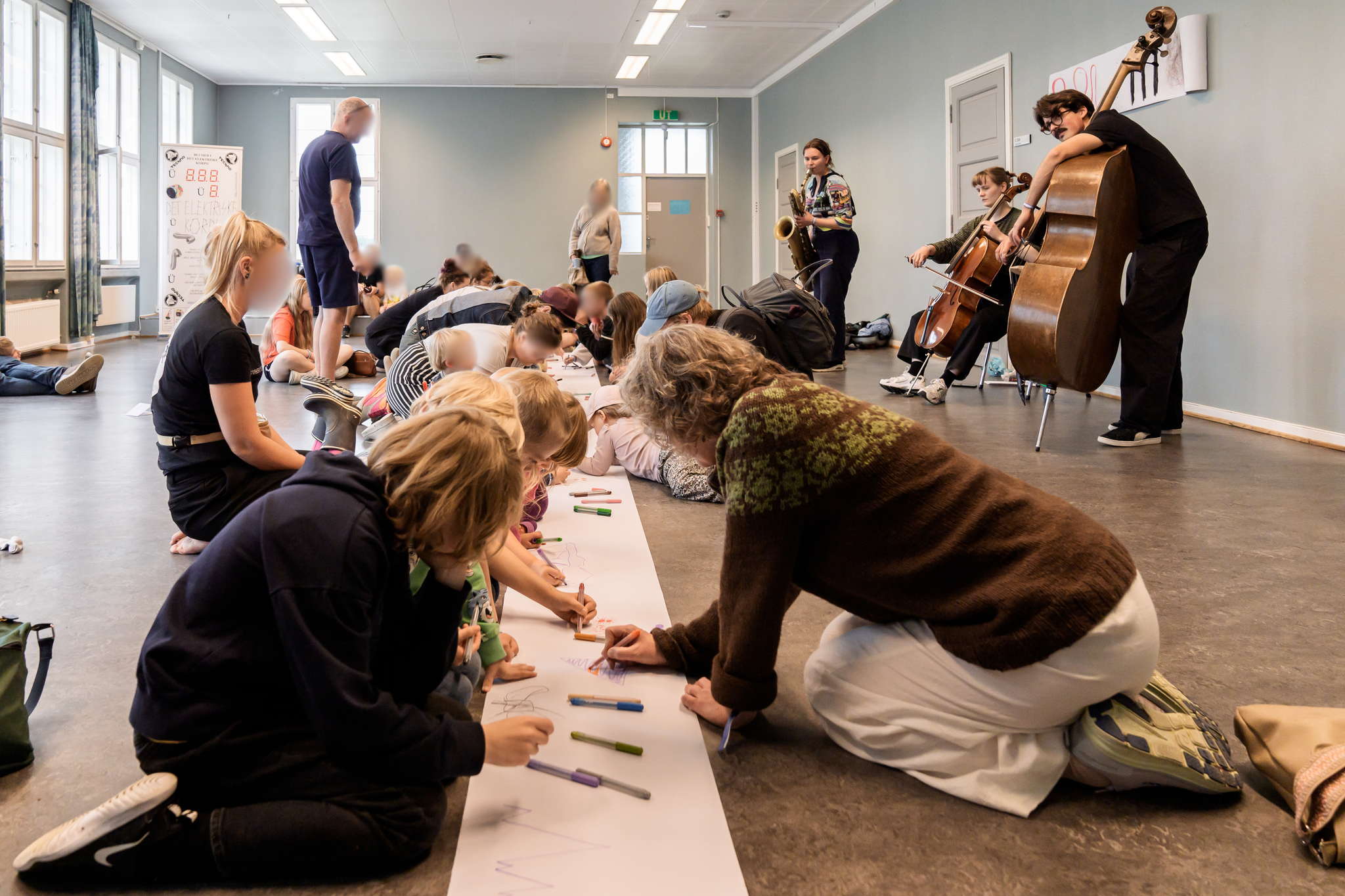 My experience from the workshop and Nicolas' reflection provoked the question of whether the goal of the workshop is for the children to understand the music. Perhaps this is where the distinction between an educational and artistic project comes in. From the start of the project, the aim has been to provide an aesthetic experience, not to teach the children about experimental music. With this as a starting point, it is perhaps more important to allow children to participate in the art than to understand it. Thus, from a musical perspective, it is more important that we musicians can deliver music at a high artistic level, at the same time as open up for the children to contribute with their musicality and creativity.