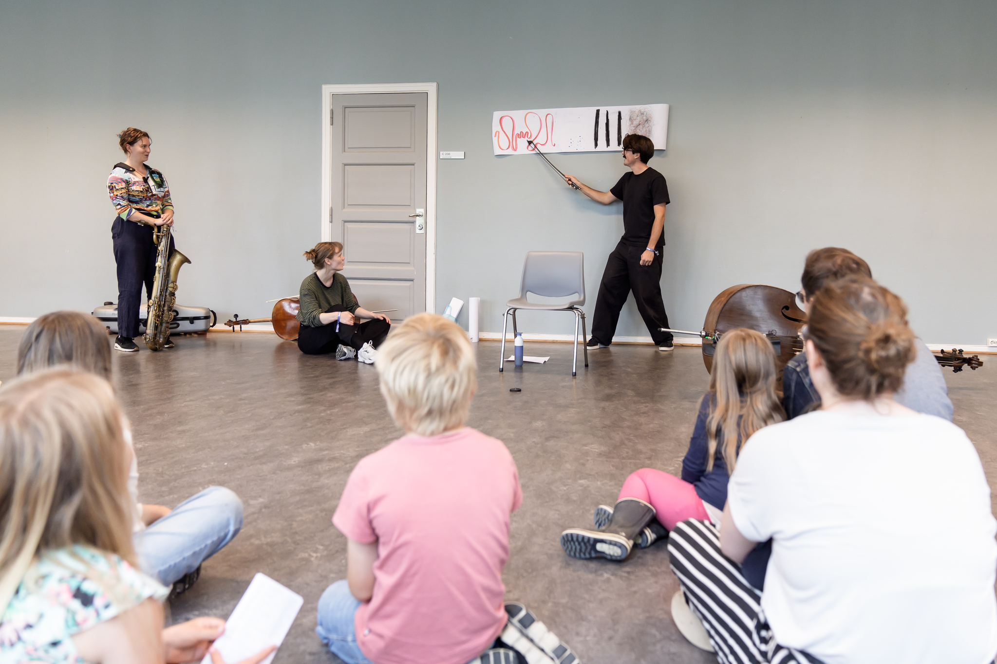 The aim of the workshop is also closely linked to what we want the children to experience. Through the workshop, we want to promote the concept of co-creation, i.e. being able to create and express oneself creatively in a group. In addition, we want the children to experience a different musical expression. This includes the idea that the children should be able to participate in this artistic expression with their already existing musical skills and creativity, thereby recognising the value of the children's creativity and individuality.