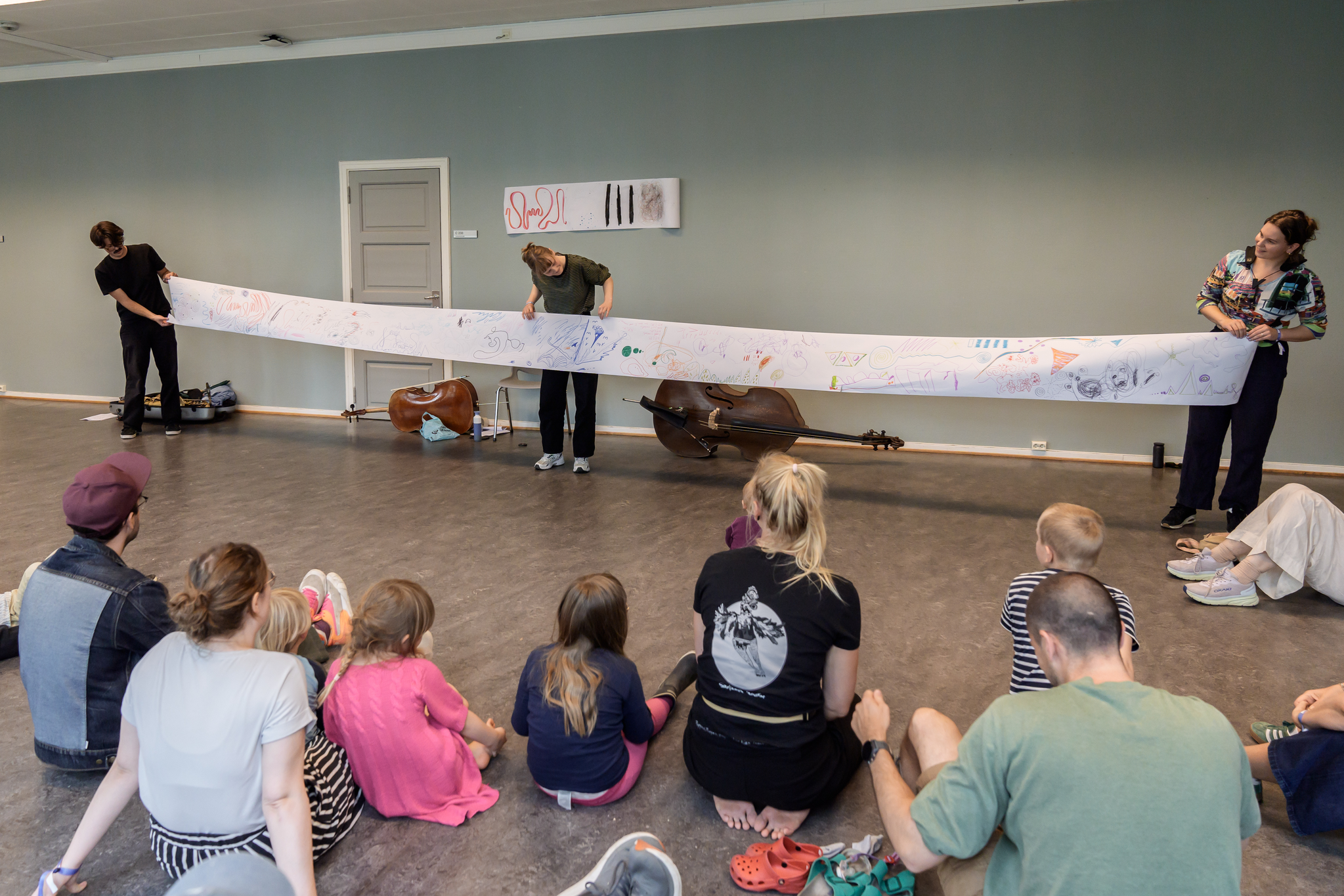 In relation to what we want the audience to experience, we also need to think about who the workshop is intended for. The project has its origins in a cultural and political mindset that art and music should be accessible to everyone, and that creating art and music is not something that only a few people can do. In this lies the organisation of the project and who we choose to contact to carry it out. Throughout the 6 workshops, we have tried out different settings. It was fantastic to be able to collaborate with both SoundLAB and Kunstfest Rotvoll, but from a political point of view, as curator of the project, I see greater value in performing the project in non-art institutions, because this is where you meet people who don't know these institutions beforehand, such as when we give workshops in kindergartens.