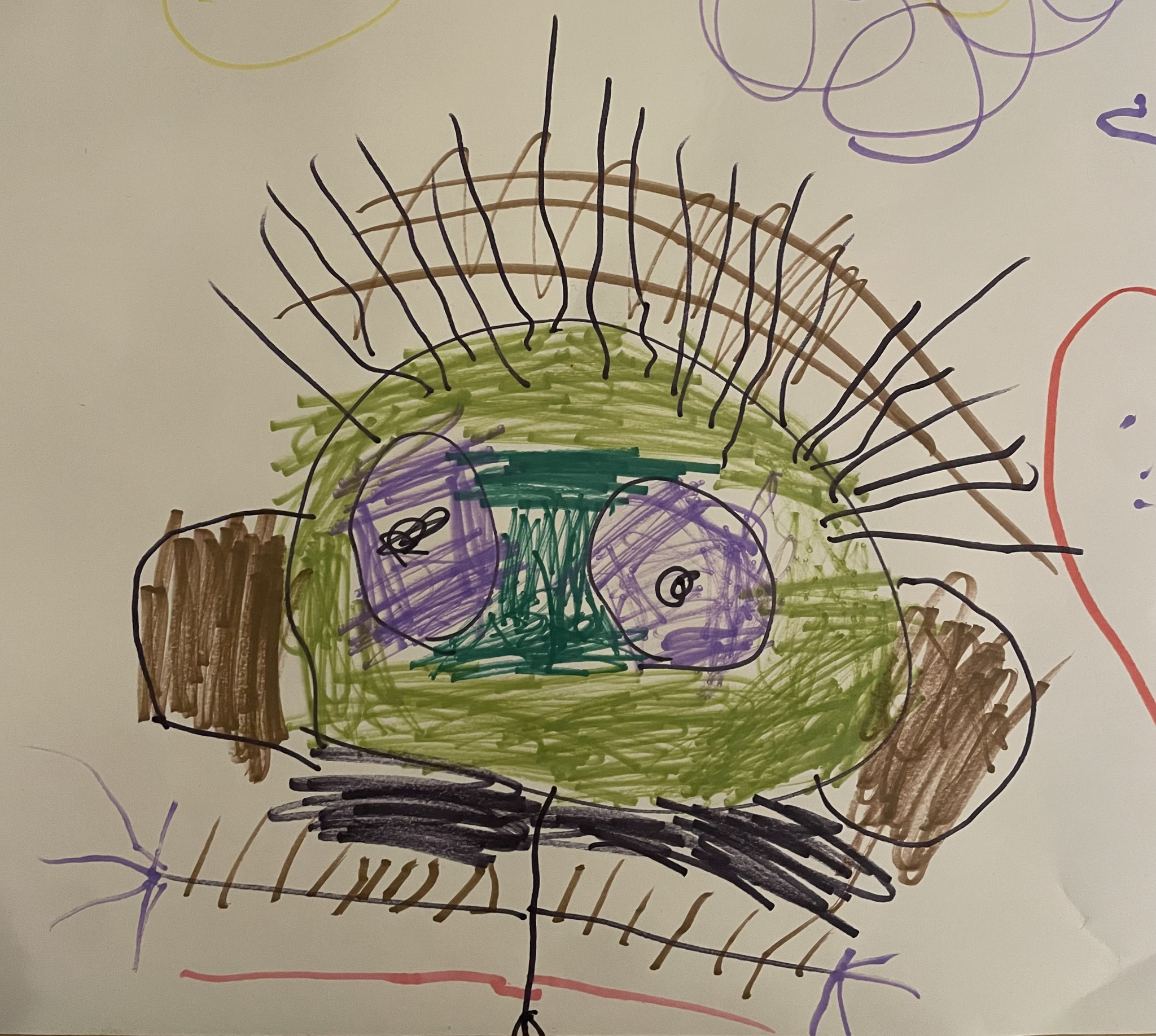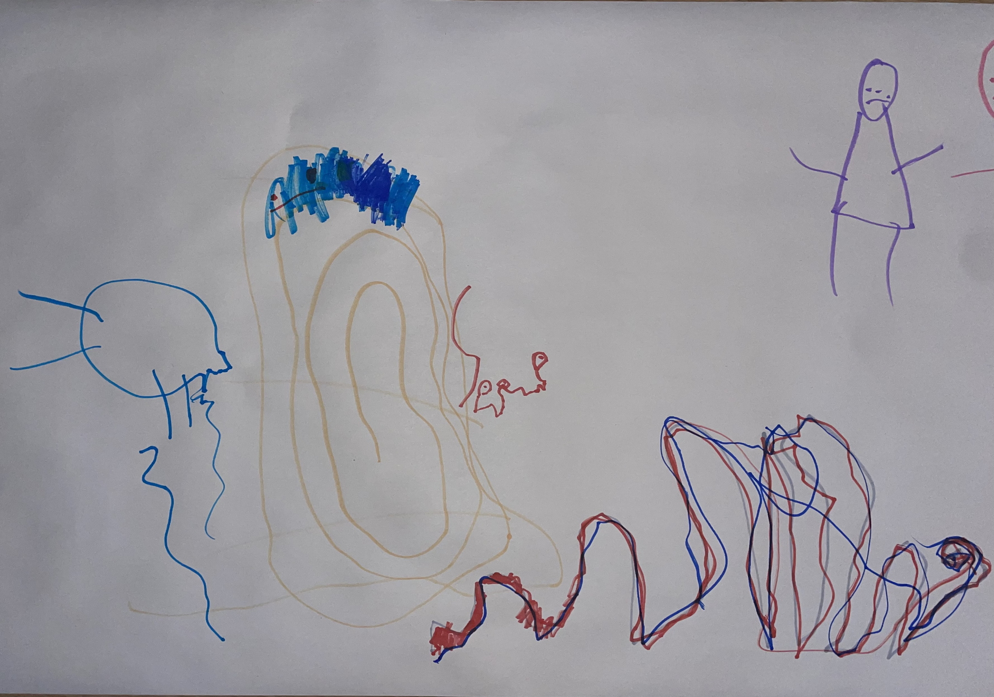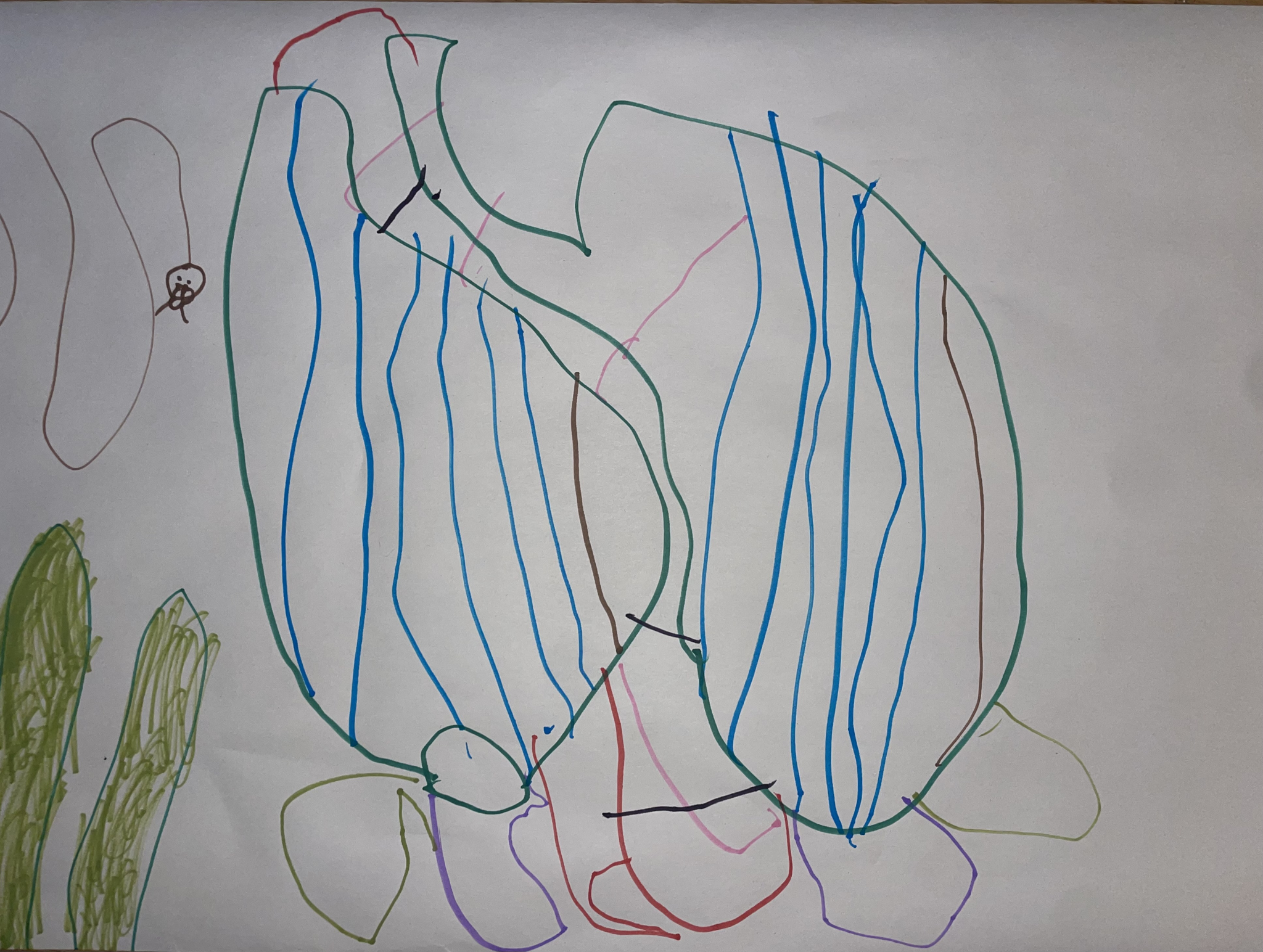 This example is just one of many where we musicians assume what a drawing is based on our prejudices. The danger with this is that we can quickly hurt the children by saying the wrong thing and that we can also steer the interpretation of their drawings in the wrong direction. This shows that we need to be more aware when we ask the children questions about their drawings and that we should not, as far as possible, try to avoid asking if they have drawn specific things.
