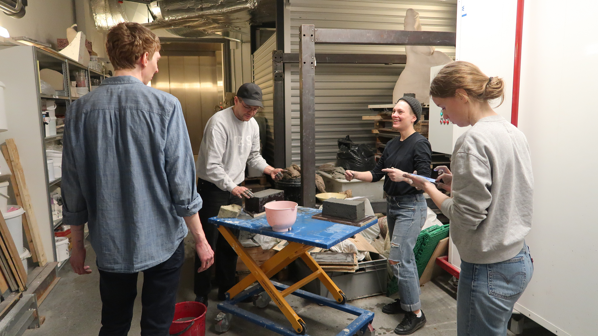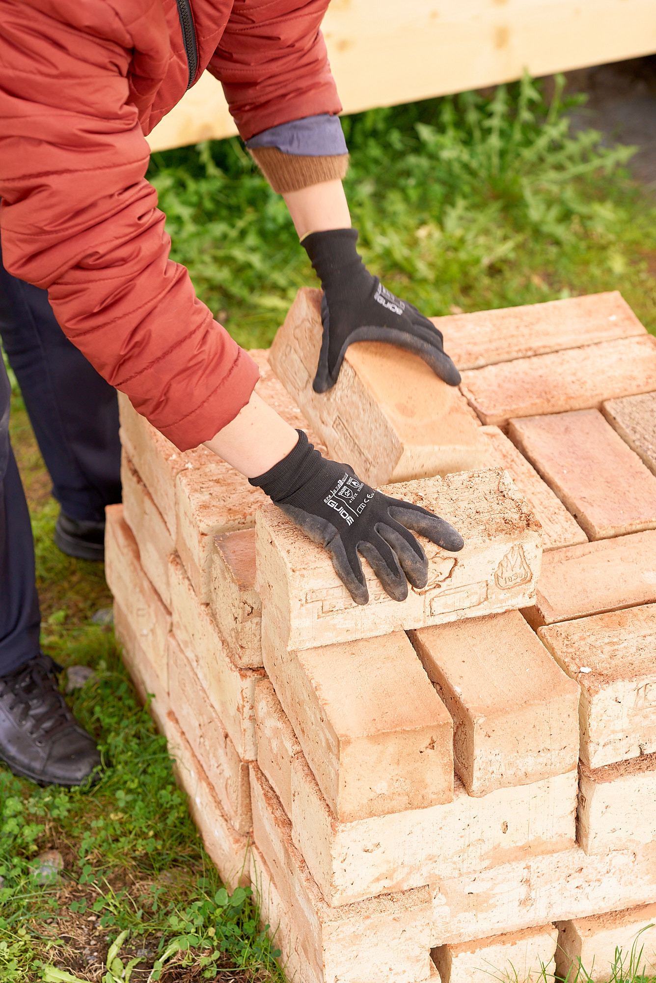 I den tredje workshopen støpte og stemplet vi mursteinen sammen, og i den fjerde – som var åpen også for deltakere på Arkitekturtriennalen – murte vi sammen det hele i paviljongen på Økern. Jeg fikk hjelp av Chris Millar, som arbeider med tradisjonelle måter å mure på. Han lærte meg å mure med blåleiremørtel, som jeg valgte fordi en da kan ta ned konstruksjonen senere. Dessverre tålte ikke dette den tøffe vinteren, så konstruksjonen har gått i oppløsning.