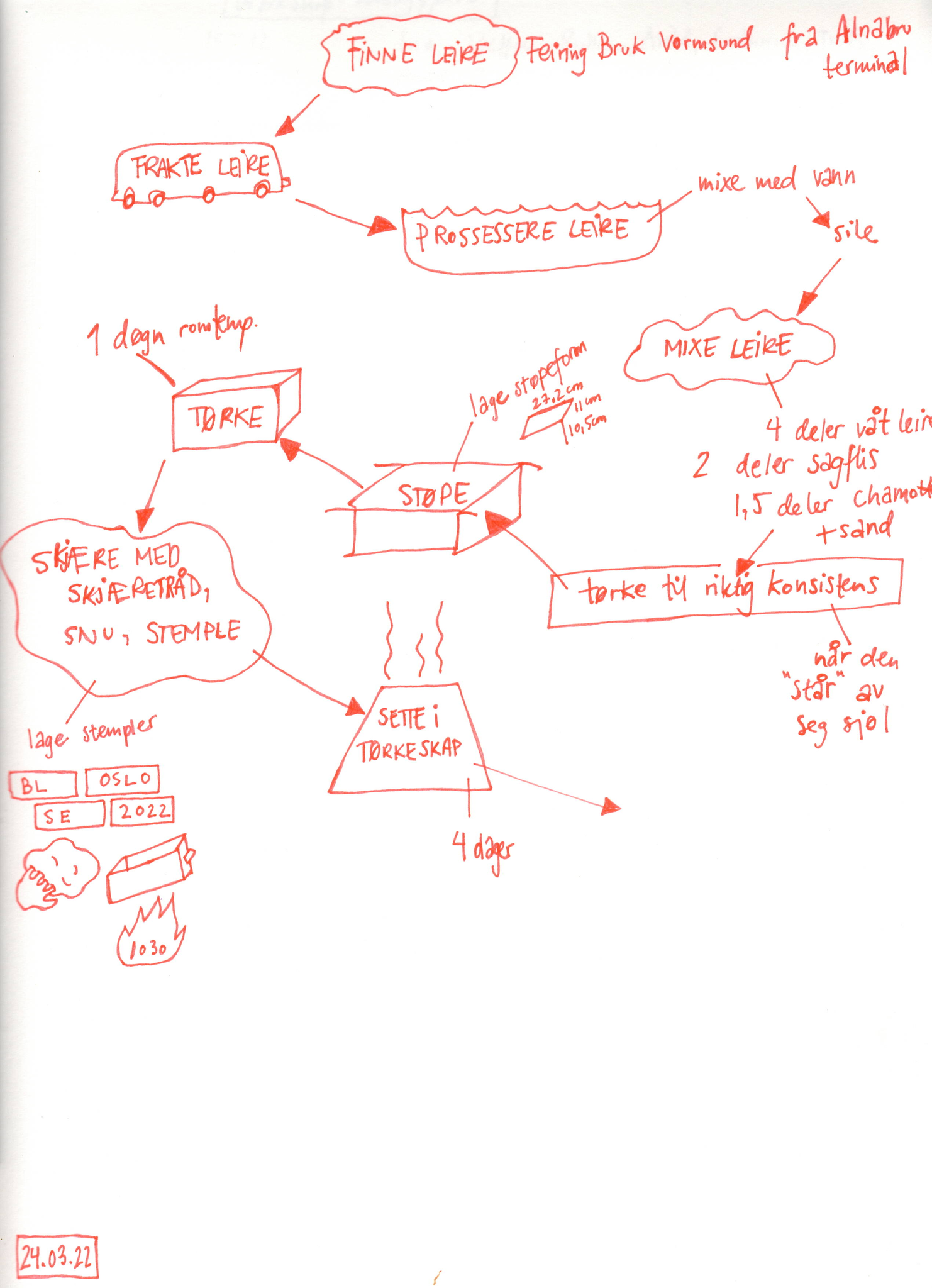 24.03.22 Oppskrift på å lage tegl i forbindelse med midlertidig kunst i offentlig rom prosjekt på Økern. Her bruker jeg samme oppskrift som jeg også gjør i det offentlige kunstverket Overgang i Dronning Ingrids Hage på Lilletøyen.