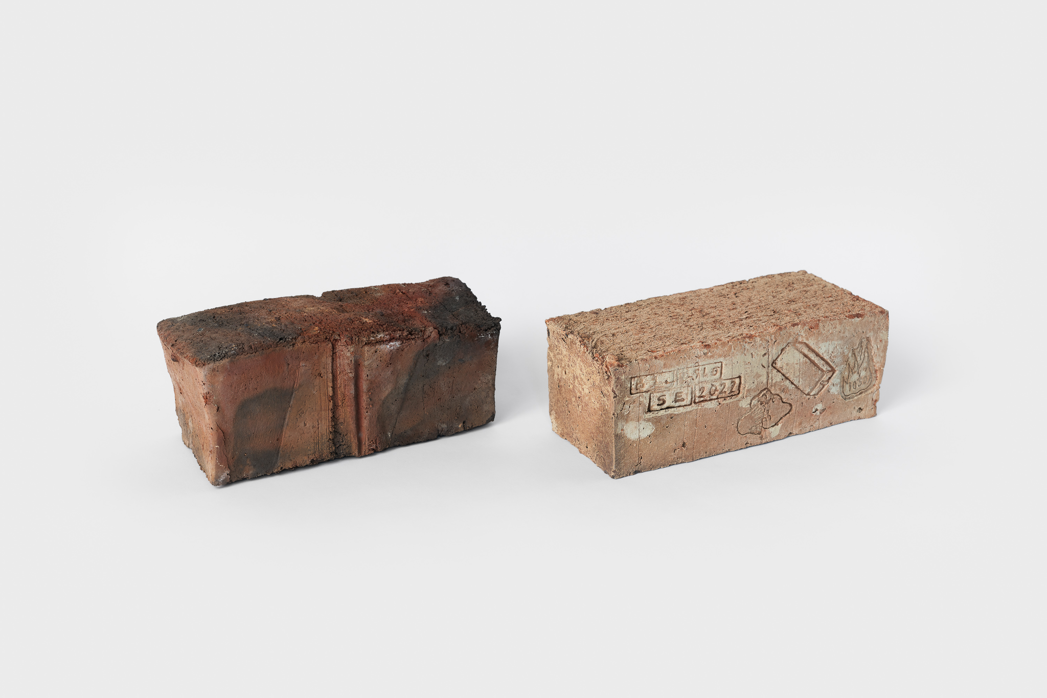 Stemplet: BL(for blåleire), Oslo, SE (for Sigrid Espelien)2022, og symboler: hånd i leire, 1030 i flammer og en teglform.