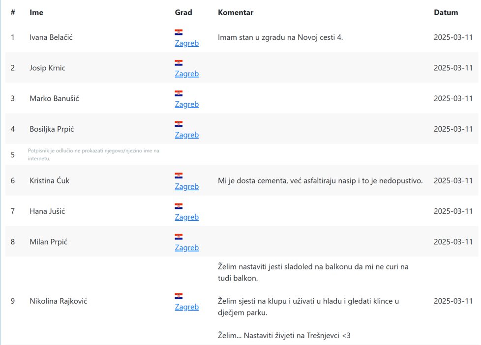 Some of the spectators watched everything from the other side of the road and then joined in the discussion and participated by leaving their answers about the changes resulting from massive constructions. Inhabitants mostly agreed that the neighborhood feels crowded and unorganized because of the huge apartment complexes and they don't feel related to those places. Some expressed the inability to influence private investors and the feeling that such actions would never stop and that we can't do anything about it. Because of that, they think that the better idea is to move away because Trešnjevka is losing the homey feeling and its warmth.