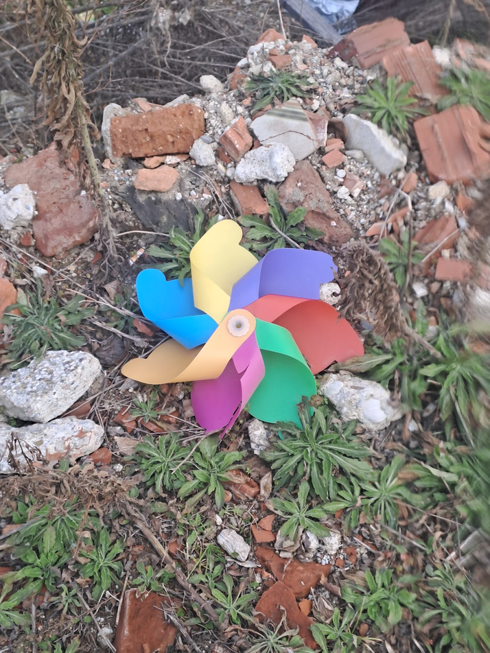 After the song, performers slowly enter the site with a task to explore the site and pick up the pieces of someone's life (tiles, ornaments, bricks, toys...). On the pieces they either write down what will disappear from this specific site (in terms of visual, audio, tactile, and scent they experience there) or they bring the piece out on the table where the spectators can write down their reflections on the question from the first step.