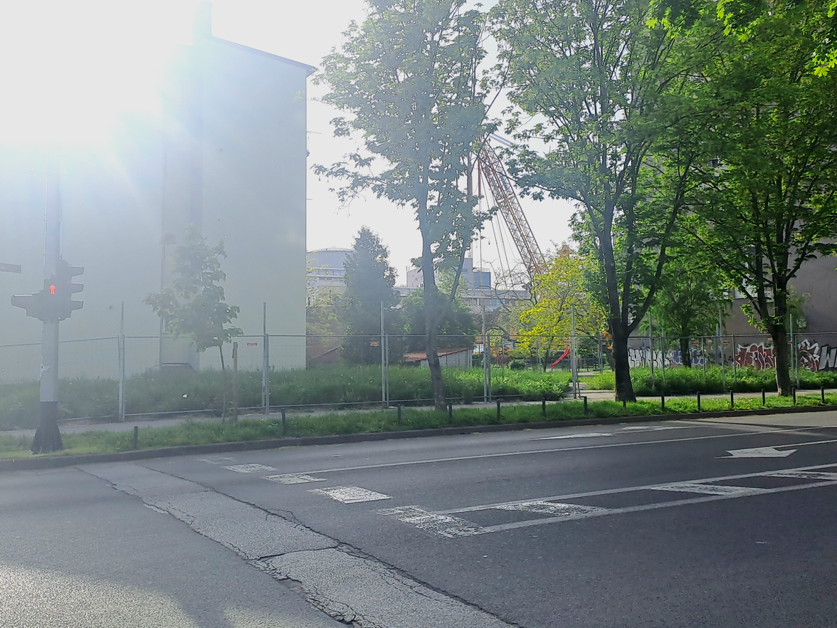 Occupying the space across the construction site with the construction of resistance to the real estate investments which are in disbalance with the infrastructure of the neighborhood and with the needs of the community.