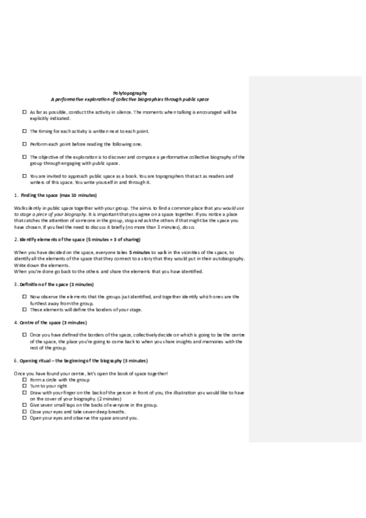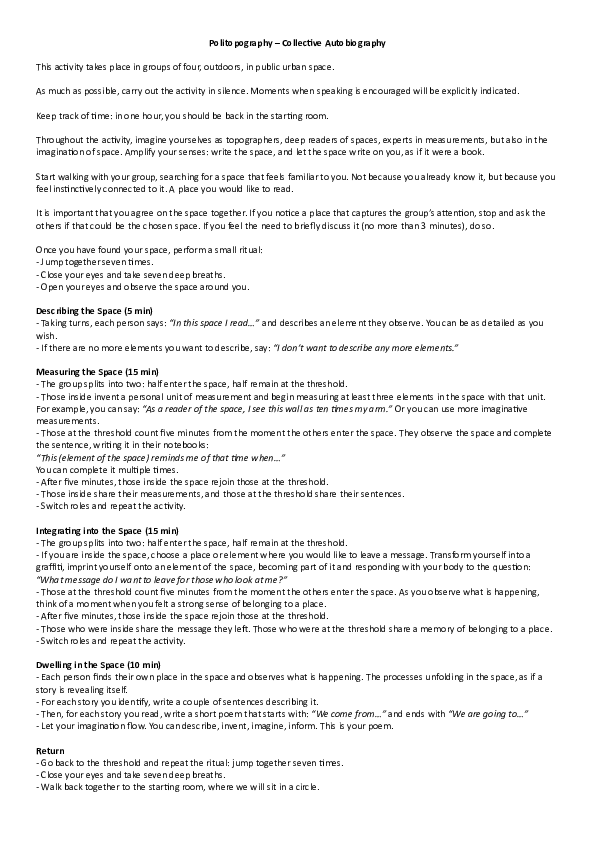 Design of the collective performative encounter of autotopography – Thursday 5th of December