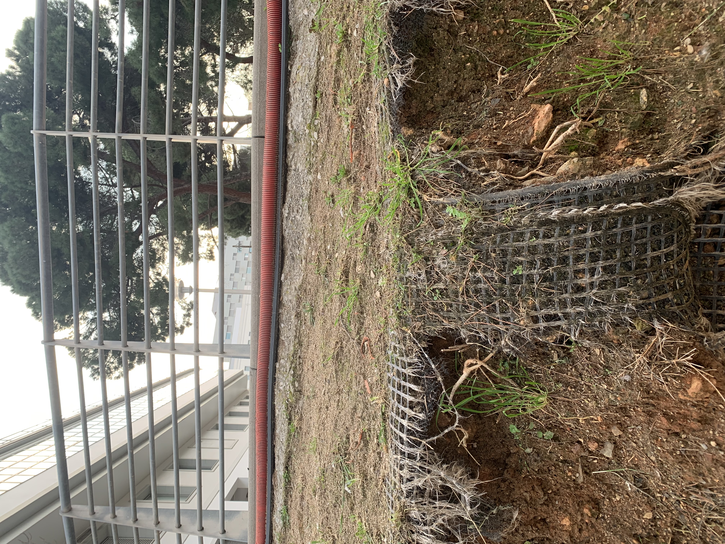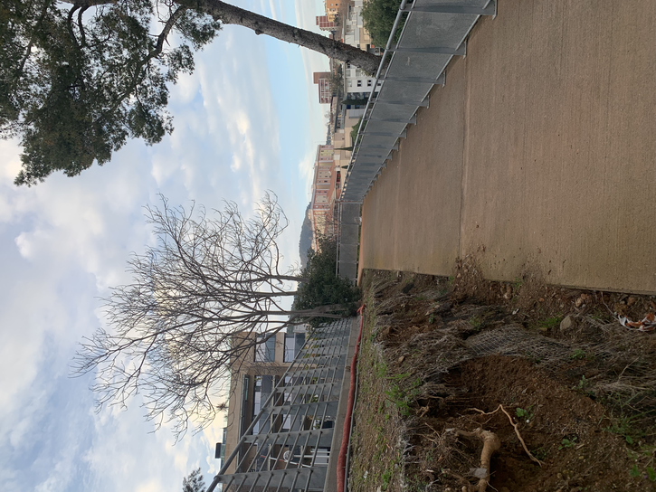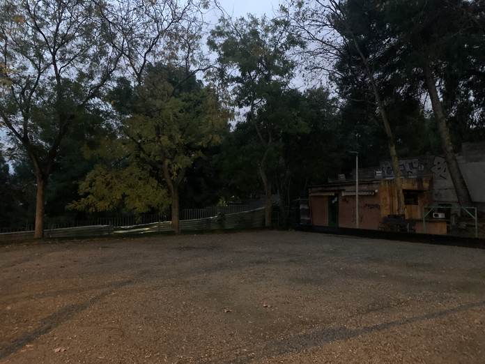 •De más o menos 30 metros por lado, rodeado de árboles, acacias, un pino y un hermoso aroma (mimosa) que ya asoma su próxima floración. Un espacio para espectadores, ocupado por una persona sin casa que ha dejado sus pertenencias. Una parte del campo está con piedrillas escosas por el tiempo de uso, cuatro escalones para descanso. Podría estar mejor. About 30 meters per side, surrounded by trees, acacias, a pine tree, and a beautiful scent (mimosa) hinting at its upcoming bloom. A space for spectators, occupied by a homeless person who left their belongings. Part of the field is covered with scattered pebbles from use over time, four steps for resting. It could be better.