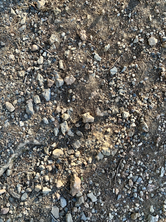 •Un rettangolo all’interno del quale c’è ghiaia sparsa. A rectangle inside which there is scattered gravel.