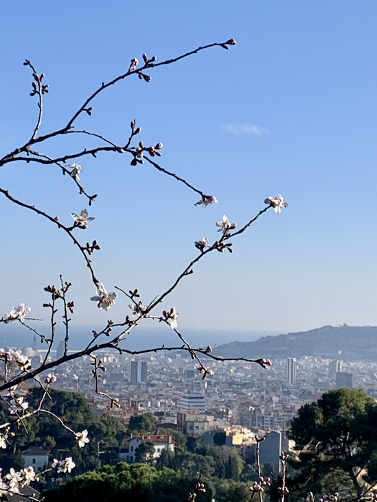 •Vemos acacias, plataneros, dos mimosas, un níspero, yuca mejicana, dos pinos, acanto e dimorfoteca. We see acacias, plane trees, two mimosas, a loquat tree, Mexican yucca, two pines, bear’s breech, and dimorphotheca.
