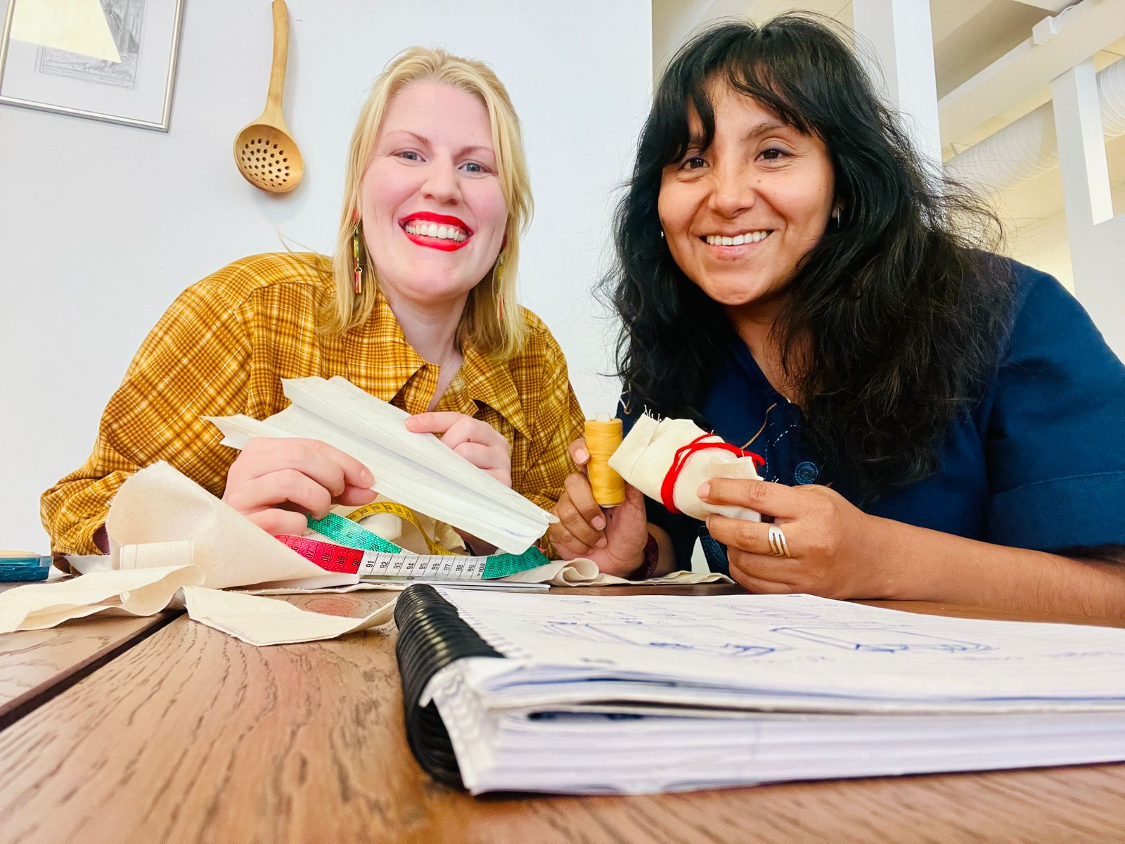 Jeg tror på genetisk minne, og at materialene jeg jobber med, forteller meg hva de vil bli til. Slik som bagene til koppene. Tekstilen Arely hadde med seg, farget med leire, fortalte meg hvordan den best kunne brukes til å holde koppene. Designet er basert på de samiske kaffeposene og sekker. Grunnet koppenes former, er bagene mindre avrundet, slik at de oppfyller sin nytte, i tråd med samisk estetikk. Et objekts praktiske nytte gjør den vakker.