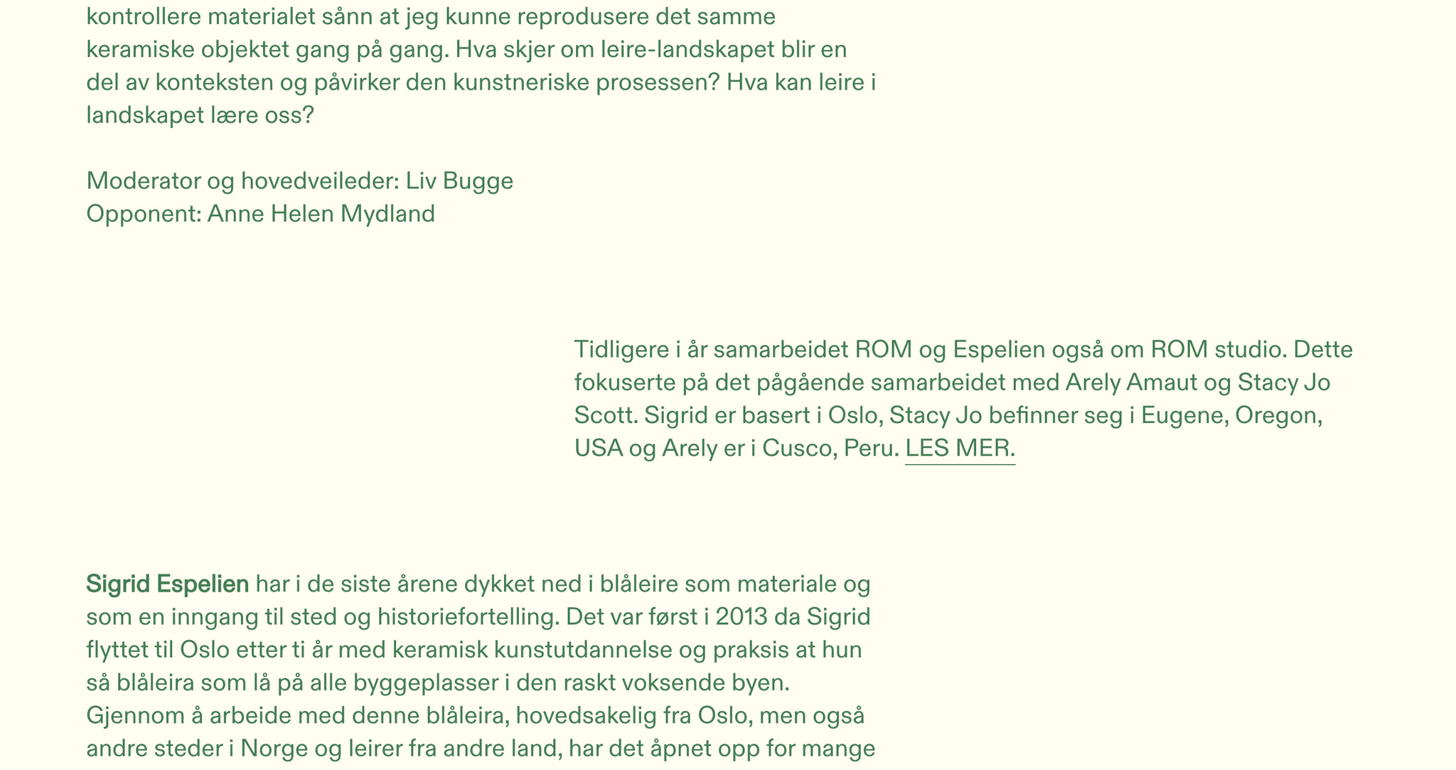SIGRID Ja, jeg kan relatere til dette. Og mens du snakket, tenkte jeg kanskje jeg burde gjøre keramikkobjektene til refleksjonsmateriale, for jeg ser dem mer som et vitne eller en åpner for en samtale, og jeg synes de er vakre, men de er ikke det viktigste for meg. De er interessante som visuelle objekter, men det interessante for meg er alt rundt dem.