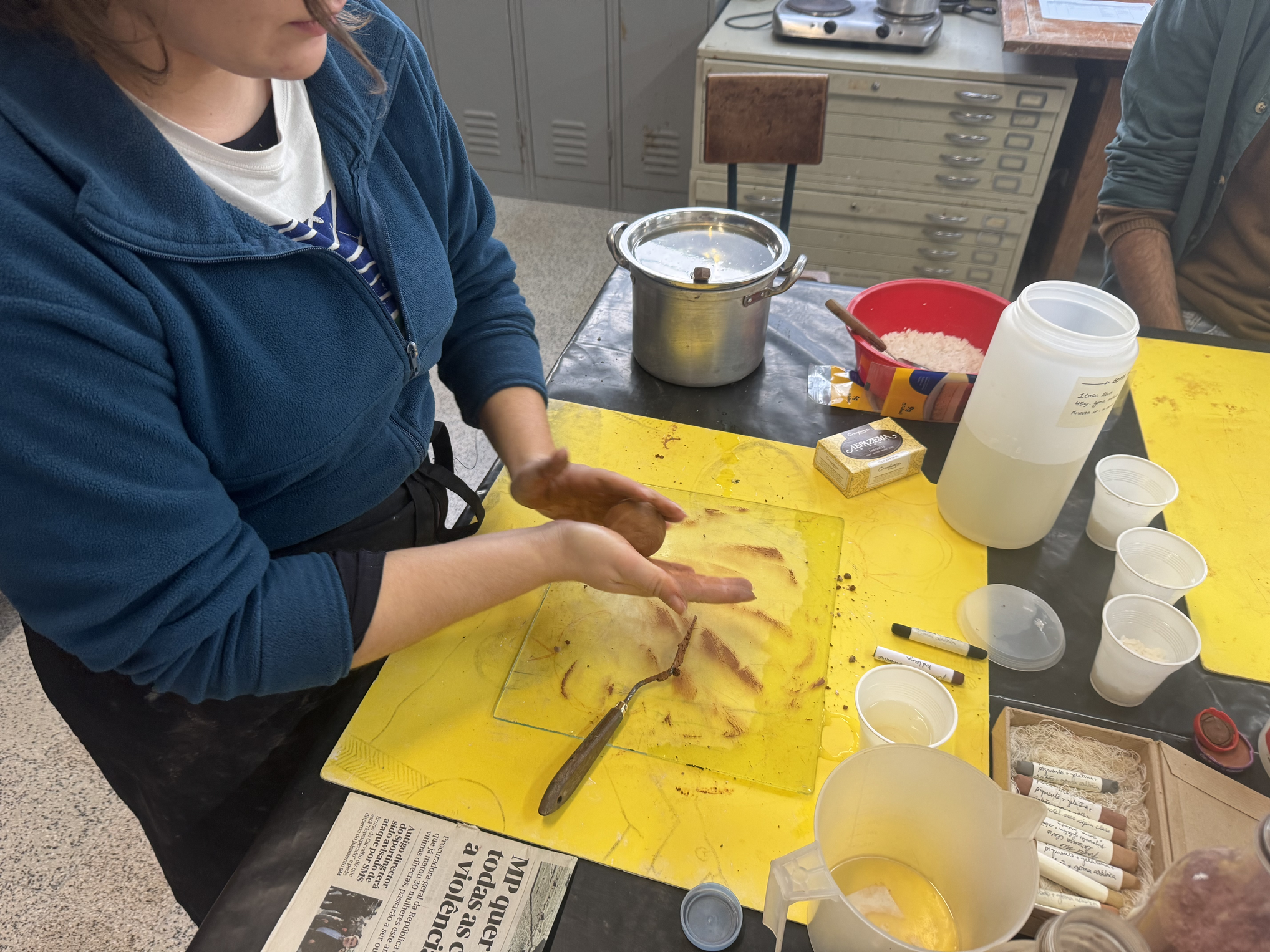 (PT) O Projeto Solo, tem como base o estudo de solos e matérias naturais portuguesas como um dos elementos principais de aplicação no campo das artes plásticas. Através de workshops, pretende-se que os estudantes alarguem o seu conhecimento dos materiais que utilizam diariamente, assim como pensar sobre os diferentes solos e pigmentos de Portugal. (EN) The Soil Project is based on the study of Portuguese soils and natural materials as one of the main elements of application in the field of fine arts. Through workshops, the aim is for students to broaden their knowledge of the materials they use on a daily basis, as well as to think about the different soils and pigments in Portugal.