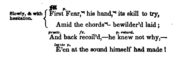 (…) But as soon as this pathetic sensation has strongly and fully imprinted his fancy, let him, then — and never a moment before — attempt to give the Speech due utterance. - - - So shall he always hit the right and touching sensibility of tone, and move his auditors, impressingly : whereas, should he, with and unfeeling volubility of cadence, hurry on from one over-leap’d distinction to another, without due adaption of his look and muscles, ate the meaning proper to the Passion, he will neer speak to heart ; nor move himself, nor any of his audience ; beyond the simple and unanimating, verbal sense ; without the spirit of the writer. "2