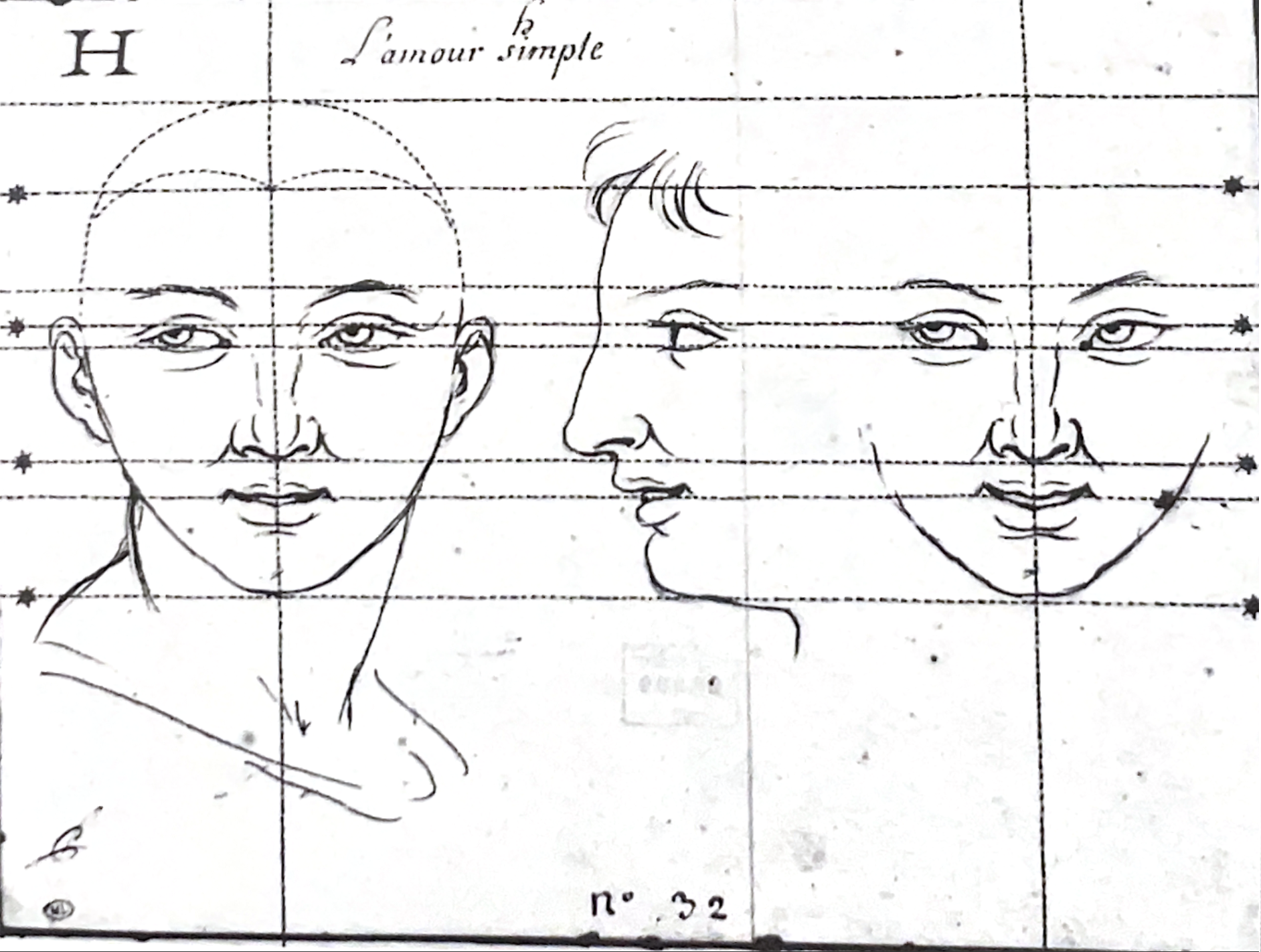 The external movements of this passion, when it is alone, are very gentle and simple: the forehead will be smooth, the eyebrows slightly raised on the side to which the eyes are turned, and the head inclined towards the object which causes our Love; the eyes may be moderately open, the white very lively and shining, and the pupil, gently turned towards the object, will appear very spakling and elevated. The nose remains unchanged, as do all the other parts of the face, which is merely filled with spirits which warm and animate it, giving it a livelier and pinker colouring, particularly in the cheeks and lips; the mouth will be just open, the corners slightly raised, and the lips moistened by the vapours which rise from the heart."3