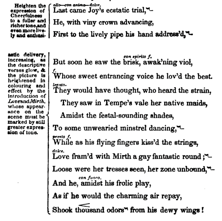 "the expression proper to which, (forming, as does the combination of Love, Joy and Mirth, the most exquisite of all earthly felicity, — that is, the perfect enjoyment of happy love,) must be of the most animated, spiritual, and enthusiastic kind : it must be all soul !"4