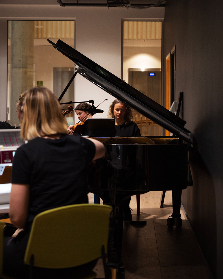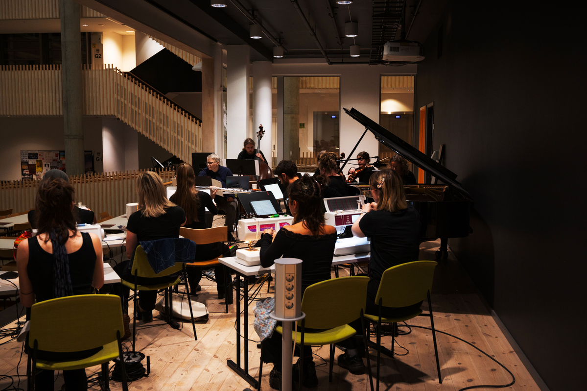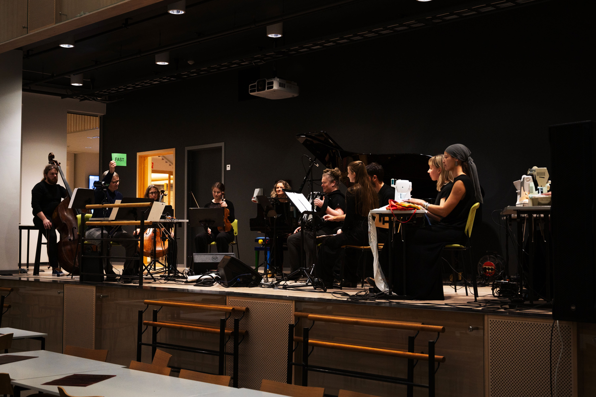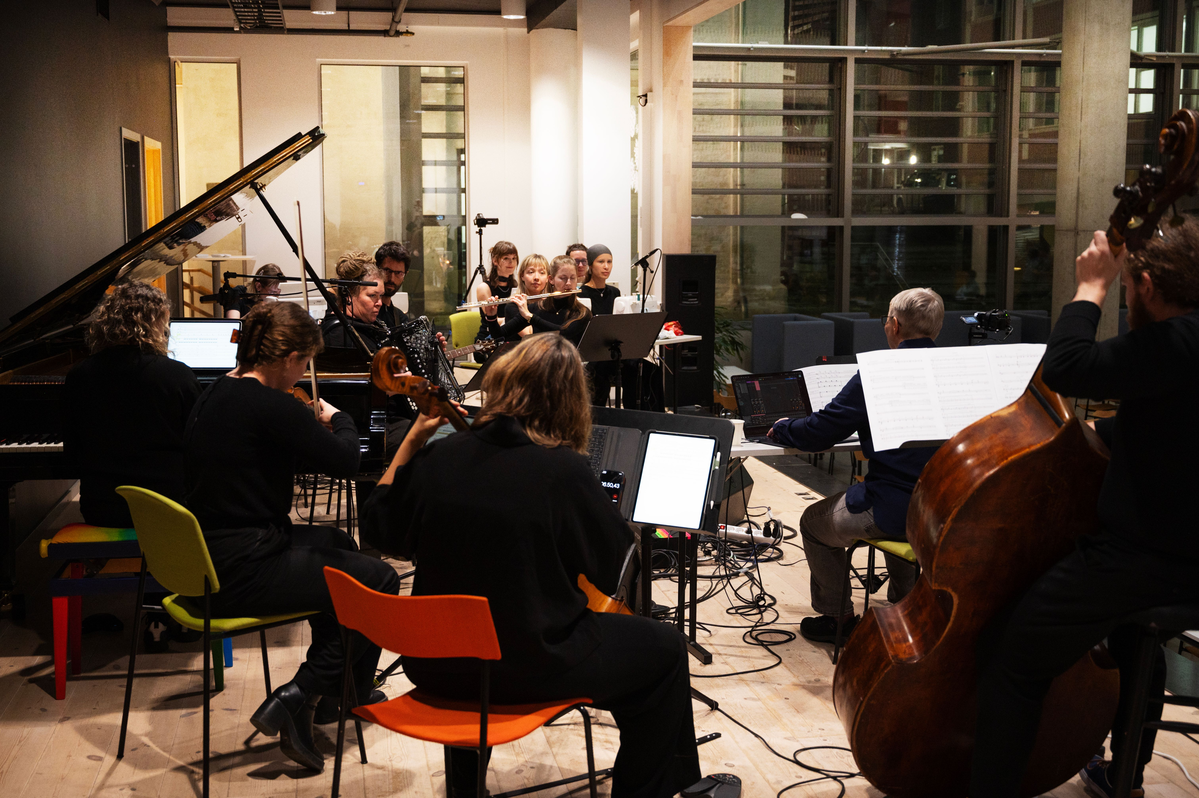 Alpaca Ensemble and students from NTNU: Marit Skjermo Storsve flute, Else Bø piano, Sunniva Skjøstad Hovde accordion, Bendik L. Haanshus el-guitar, Maja Langeteig violin, Marianne Baudouin Lie violincello, Andrias Vilhelm Puolsen double bass