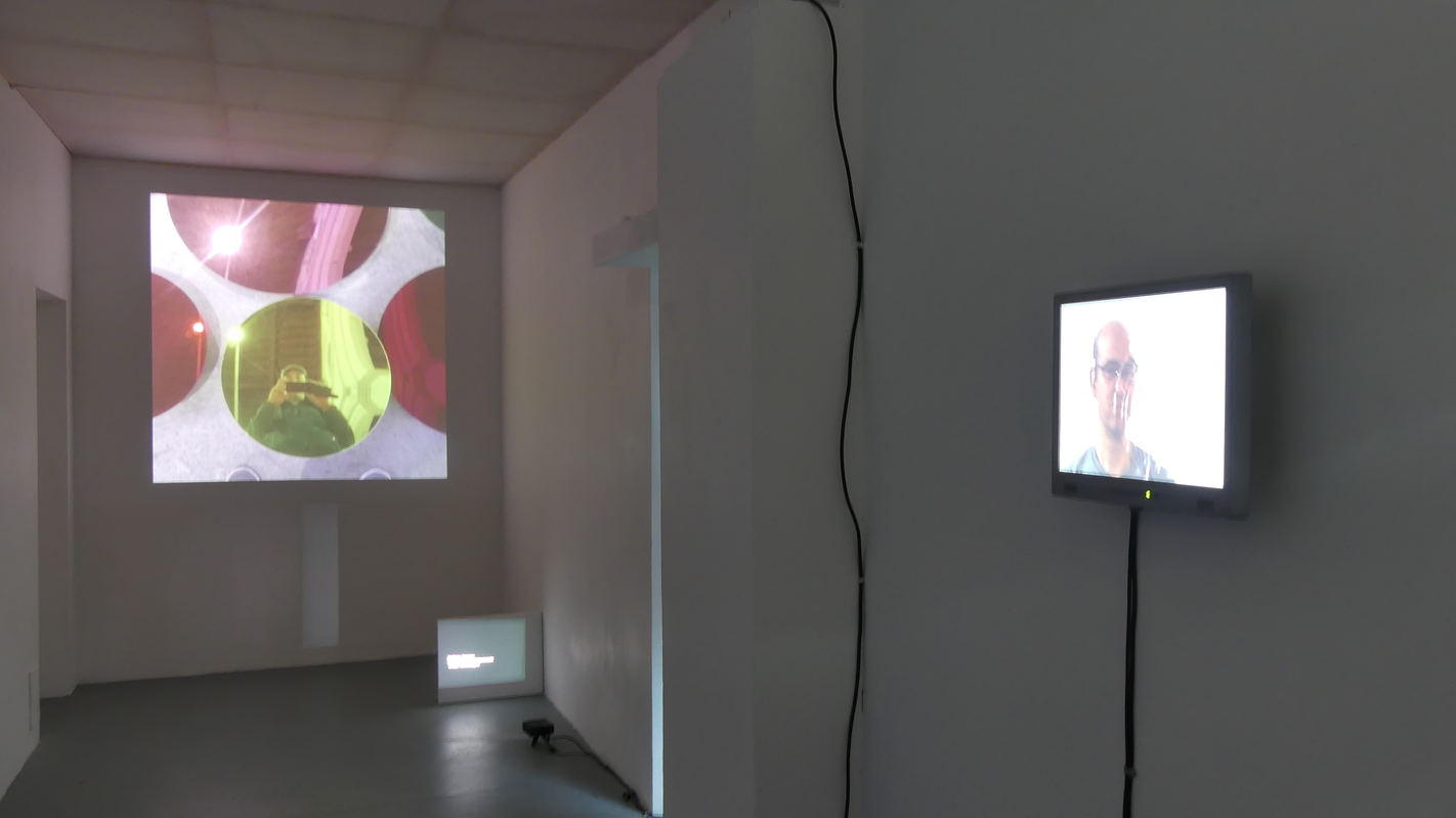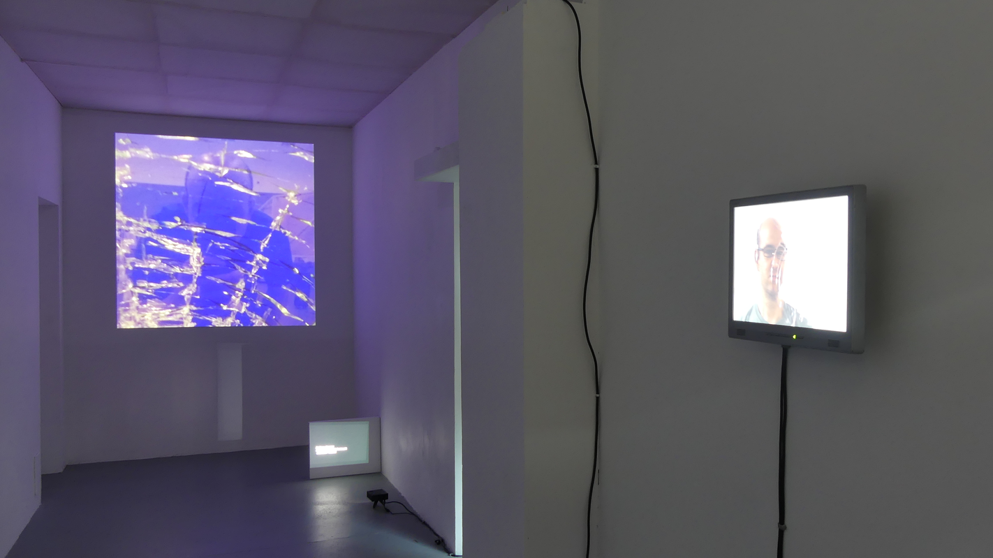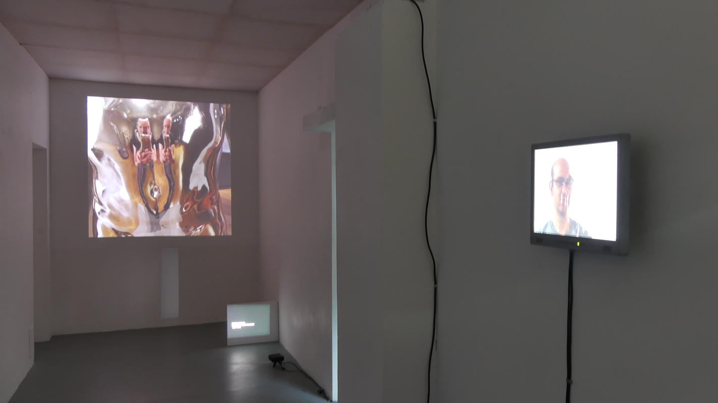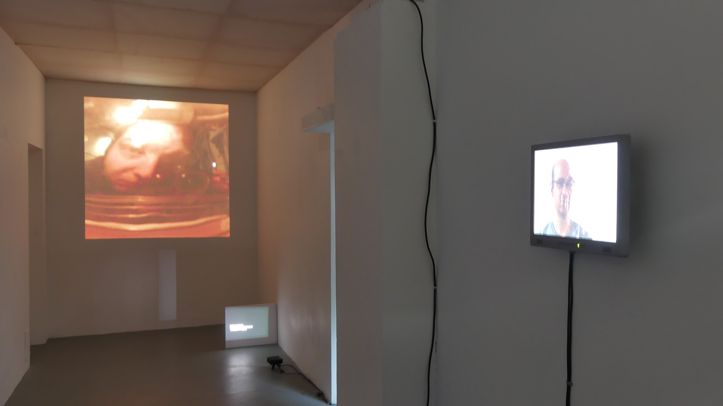 7. When it is time to show work in a gallery then create three new video files so that the most up-to-date archive of Reflected Self-Portrait is being displayed. The three video files consist of one with the Reflected Self-Portrait with a time of 7 seconds for each image. The accompanying title panel jpeg for the image is set to a time of 7 seconds; one with the video image of the mirror being smashed is repeated for the same length as the total for the other two films.