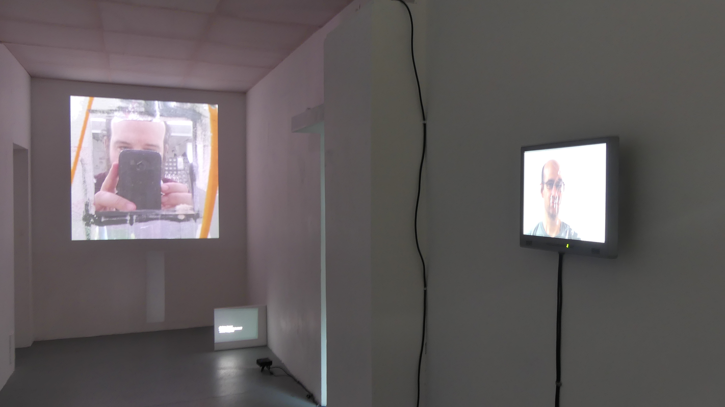 The archive of images has been configured into a three-part video that can be viewed on another page of the Research Catalogue. A slide-show projection scrolls through the self-portraits, accompanied by a screen that acts as both a text panel acknowledging the artists I appropriate and a text-work questioning authorship. The installation's soundtrack features a video of me smashing a mirror, adding another self-portrait made with a ‘humble’ mirror rather than an existing artwork. This was configured as a video installation that was first shown at General Practice, Lincoln, from 1st – 16th March 2024.