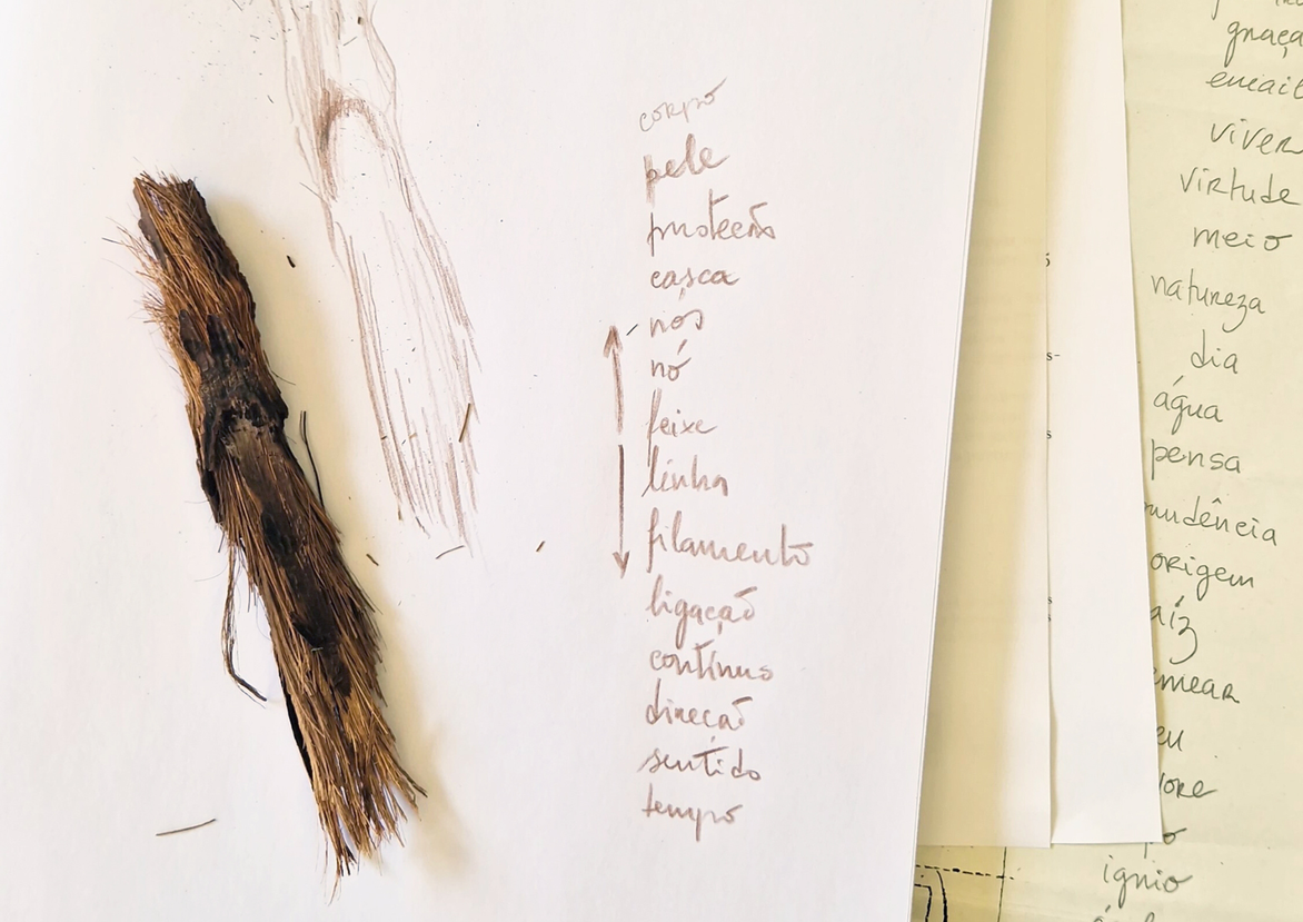 Description: Over the months that these seminars took place, I was creating an artwork called "pedra, pena, pássaro". This work was all about climbing a tree and listening to and thinking about falling and climbing.