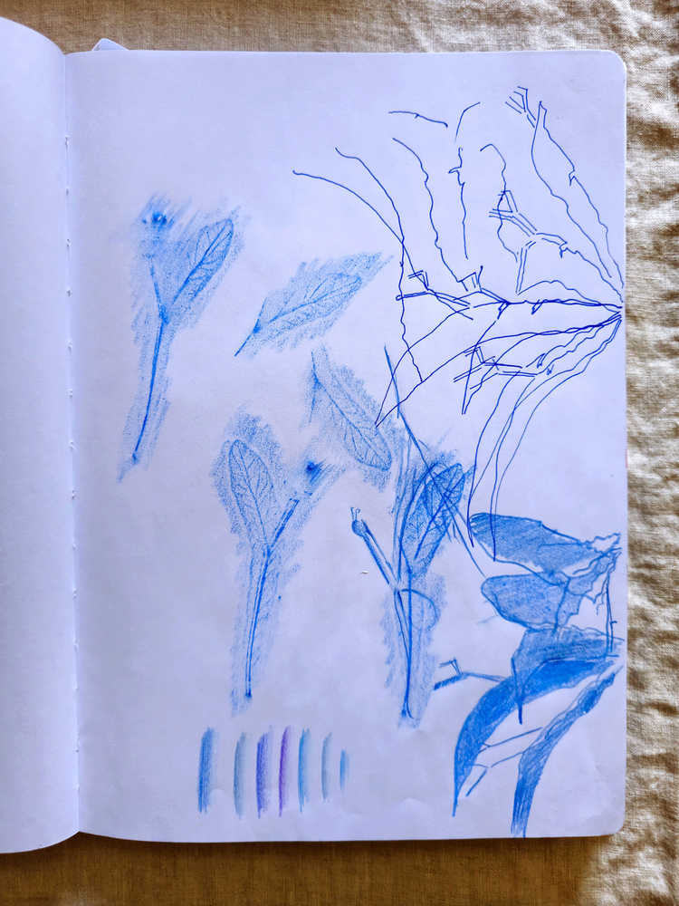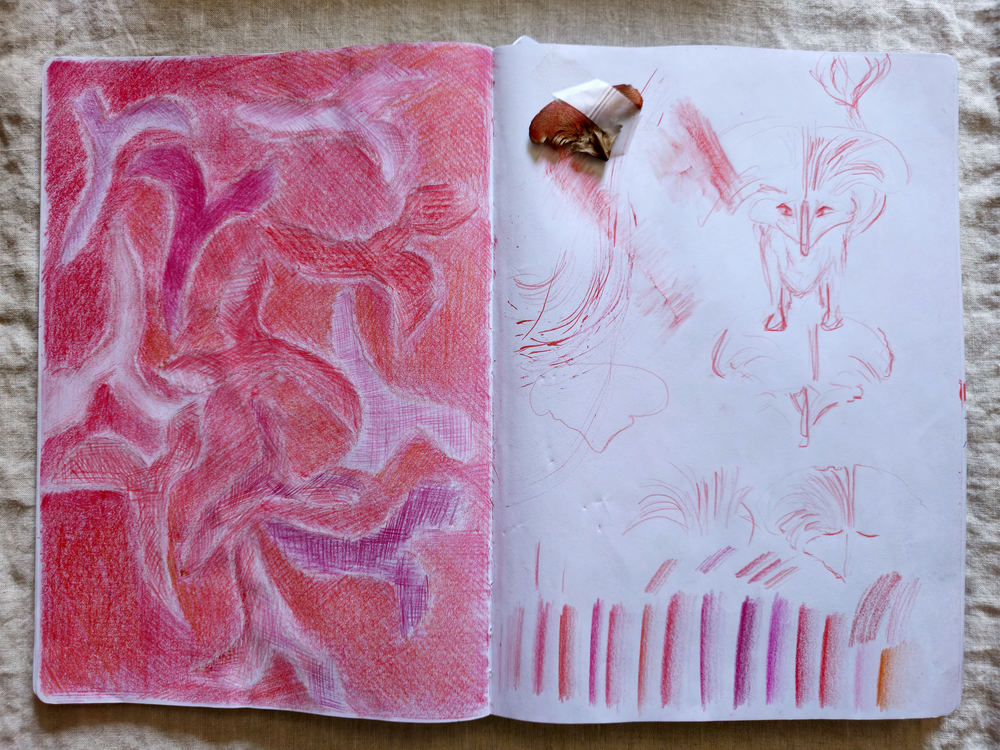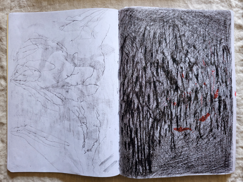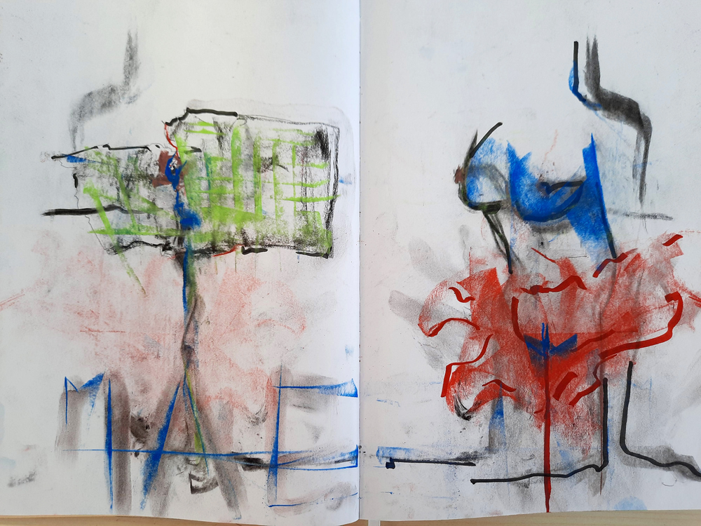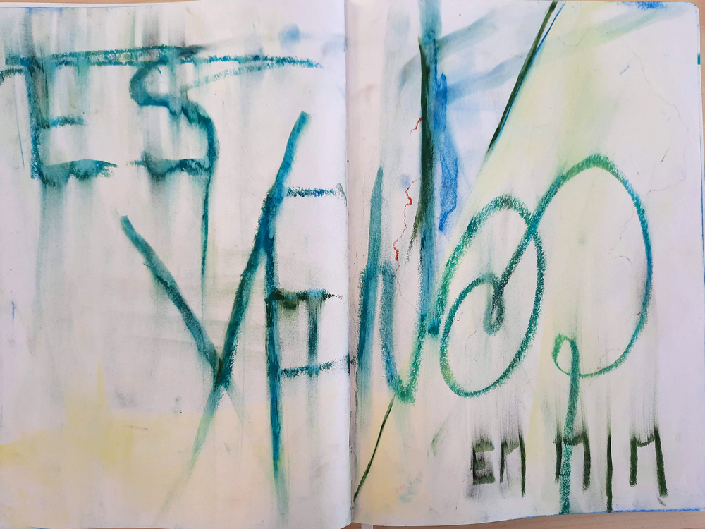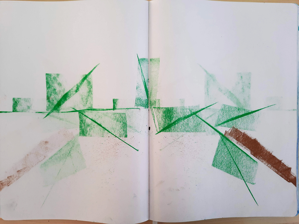 A partir daqui a liberdade de movimentos tomou conta da minha mão, desenhando árvores com pastel seco numa dança não premeditada e sem um fim em si mesma.