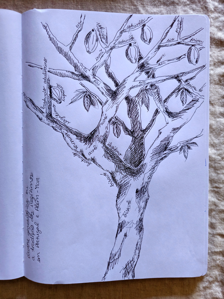 Na figura do cacaueiro, o meu objeto último que tornei árvore genealógica e símbolo da tradição dos ilegítimos em Portugal e Além-mar, cruzei história familiar e colonial. Em finais do século XVIII, chegaram a São Tomé e Príncipe as primeiras árvores de cacau. O meu avô paterno chegou no início da década de 1970, deixando esposa e prole na metrópole. Ele próprio ilegítimo, por lá abandonou um bastardo... filho de capataz português e criada são-tomense.