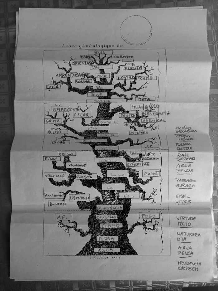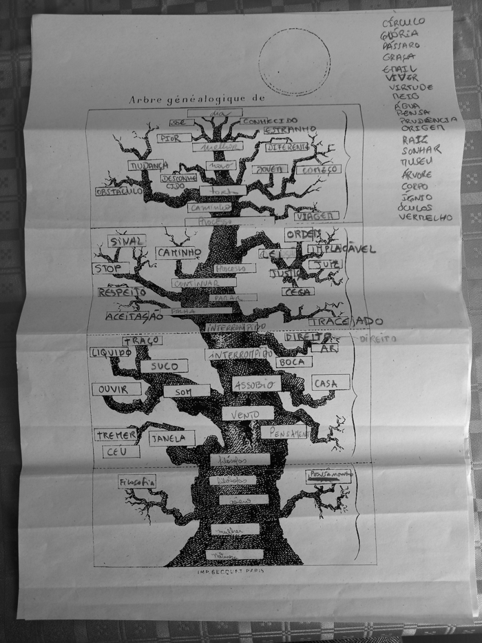 Esta ligação foi ilustrada, numa primeira fase, através de palavras que preencheram uma folha de papel.