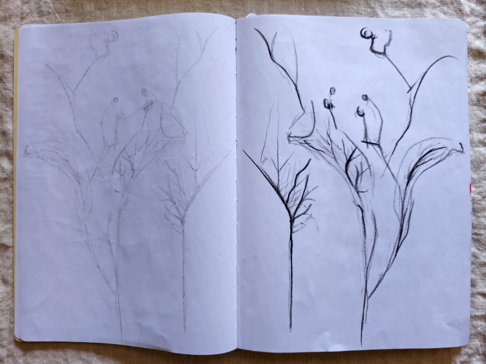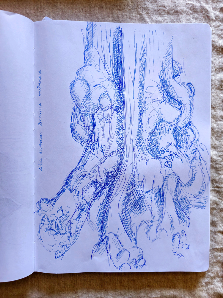 No início foi a folha de tília. Magia, liberdade e purificação. Filira e a metamorfose. Limbo assimétrico. Vasos condutores ramificados, nervuras central e secundárias. Fotossíntese. Desenho. Experimentação. Iteração.