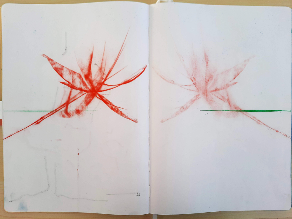 Numa segunda fase, foi o desenho a falar numa lógica de reprodução ou interpretação do objeto original. Neste processo, uma parte do objeto soltou-se e, nisto, surgiu a ideia de voo, mas ainda presa “por um fio” à peça original.