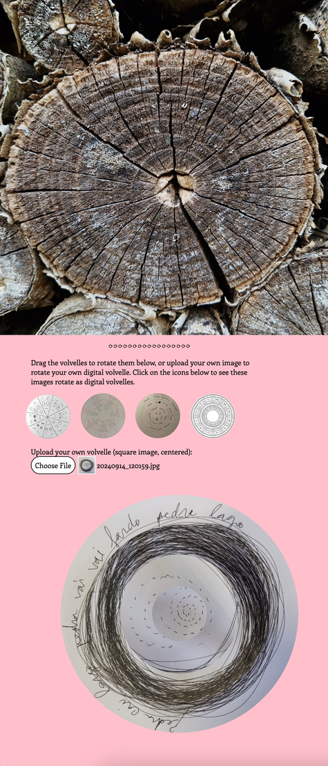 Description: The digital volvelle is a website where anybody can upload an image to make it's volvelles rotate. It was developed on the basis of code by Logan Franken for the project Hacking the Good Life.