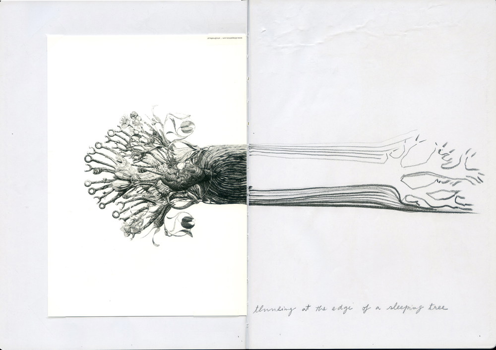 I was confused about how to organise the text fragments for the work along the tree branches. Once I saw this "exquisite corpse" exercise, I realised I could organise my writing in a tree, where neighbouring phrases in my collage of texts would be loosely related to one another to create some semblance of sense and linearity in the experience.