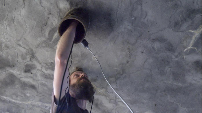 On a hot spring day, we went to collect sounds around the Barrandov bridge, equipped with all sorts of gear: a multichannel recorder for a four-cardioid capsule microphone, a hyper-cardioid, a binaural set, a contact microphone, and a geofón. The four-cardioid capsule and the hyper-cardioid were meant to capture the surroundings, the contact mic and the geofón for surfaces and sounds beyond human hearing.
