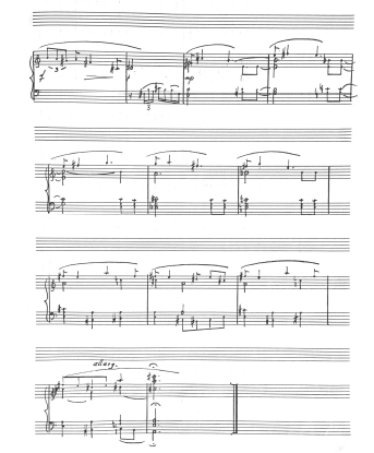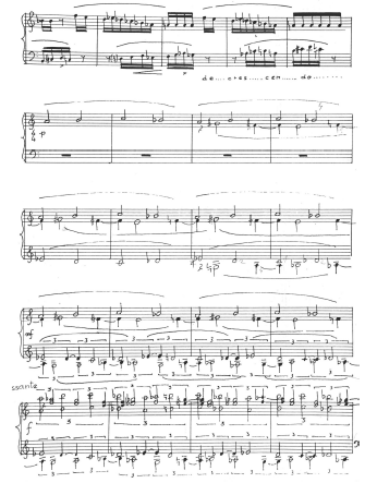 is necessary to combine in unity with the attributes of sensibility: a special slender sound, an impressive and “true” melos without the hypertrophy of colour, which must be modelled by the interrelationships of the tones to resemble a living speech. Very often the choice of the climactic tone of a phrase is decisive - if we use the most imposing one at first sight or enrich it further legatissimo by linking it with the preceding tone(s) - just then! the result is a traditional, inappropriately overwrought, “fat” (as Ilja and I called it) line. Since it lacks the necessary surrounding texture filling for this kind of expression, the result is strangely banal, at odds with the essentialism of the matter.