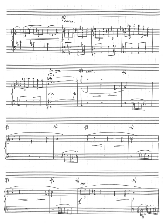 the performers' ability to perceive the expressive potential of the piece, which thus became a parade of the principles of cell use. The result was tragic - a novel, highly original composition of high intellectual value, but utterly dead and ugly in expression. As if it amplified the ugliest of the piano's potential. Yet the interval of the second and, conversely, of the seventh contains within itself a great potential for expressive gestures and provides a wide manoeuvring area for choices of proportions of tone creation, rubato or other means of expression. When studying new music, therefore, a mental connection with the music of the past tends to be extremely important, indeed crucial, for me. Not for the sake of imitating situations or “stealing” performance practices. But for feeling the whole range of possibilities that the composers of new music themselves are often unaware of. They often are not pianists, or good