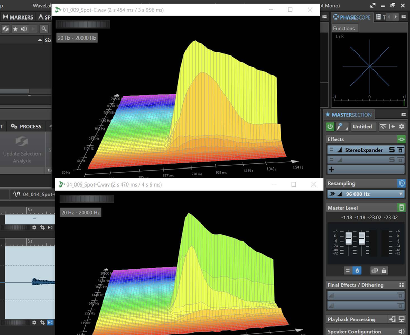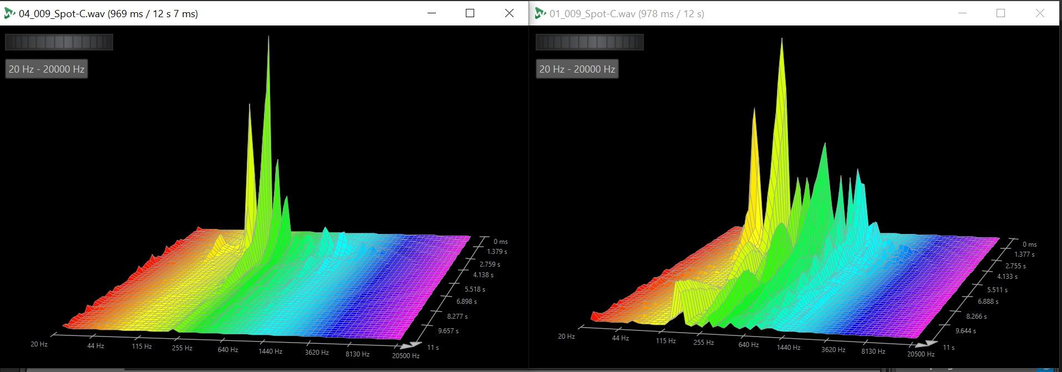 Below is the 3d frequency analysis of C2 made with the Wave Lab Pro 12 software. I chose C2 because the sound of the base register on a historical piano differs significantly from it on a modern grand piano.
