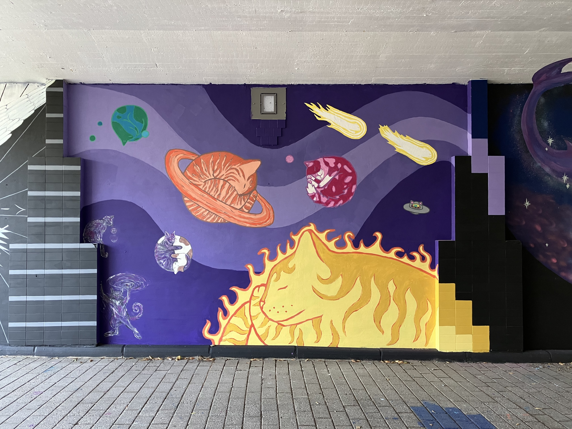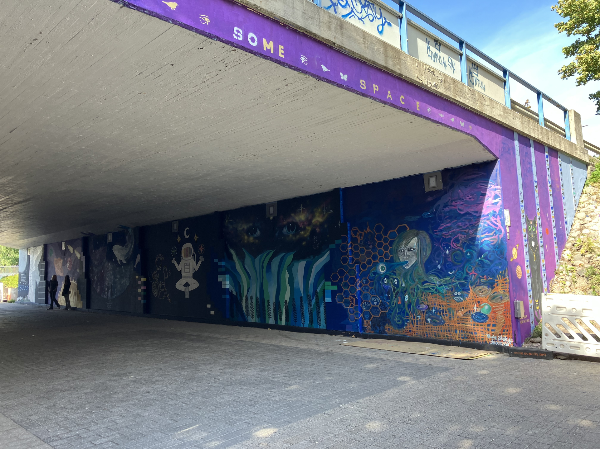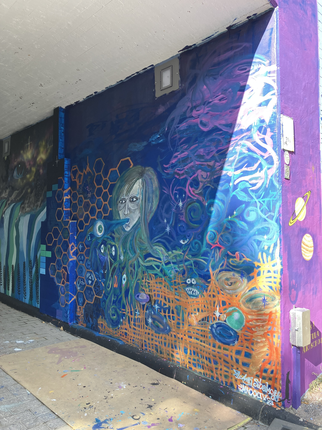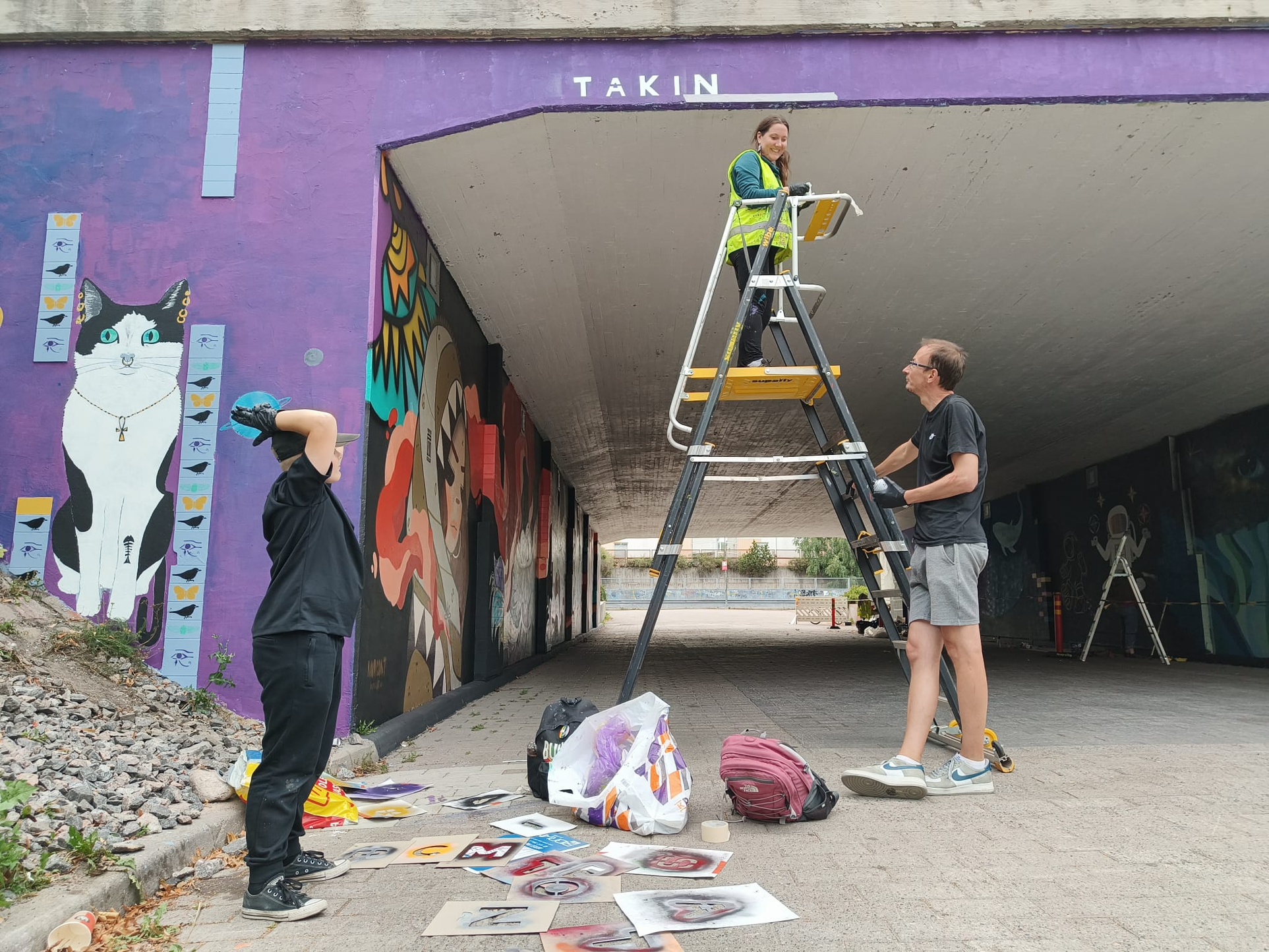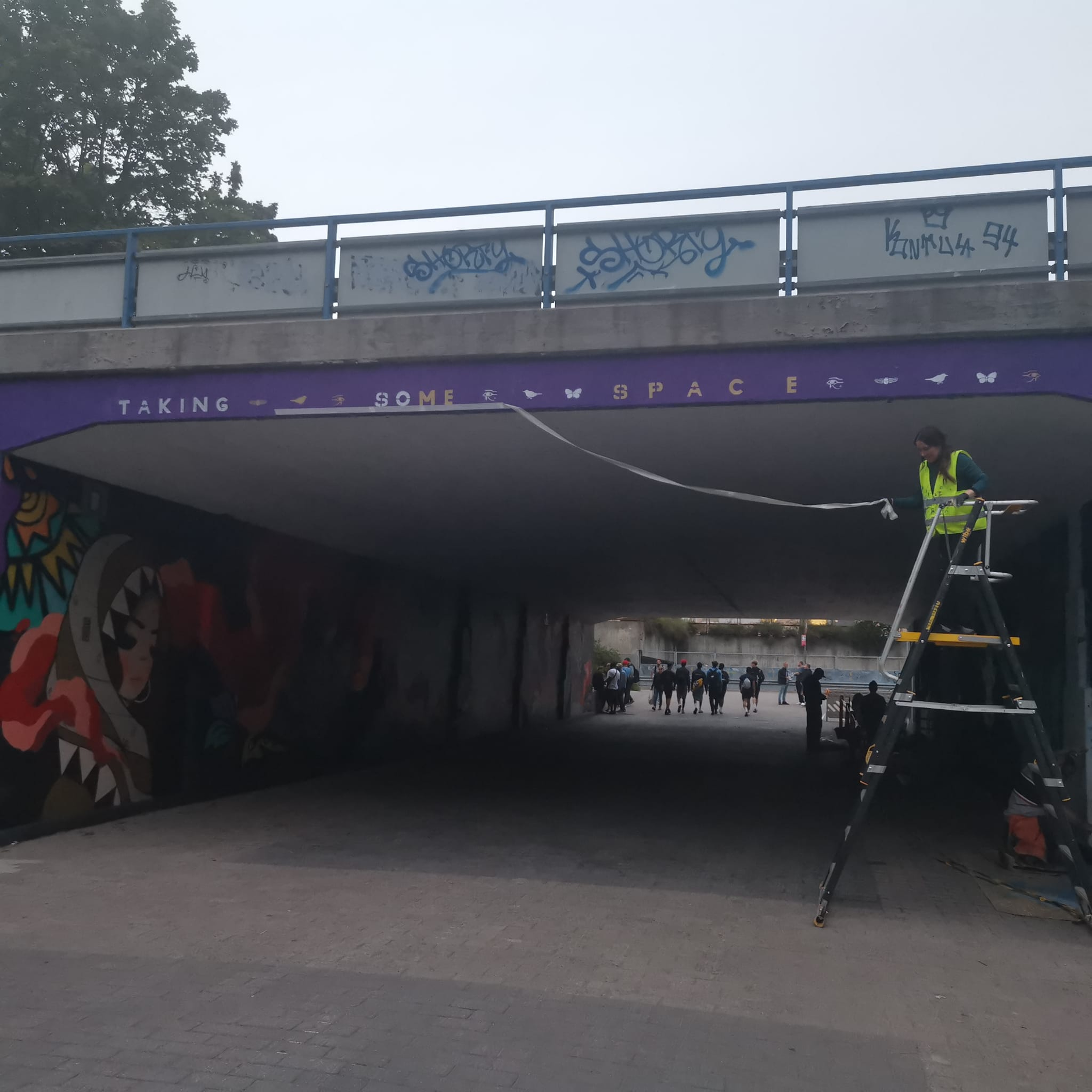 Tässä ekspositiossa (KAS-kuvagalleria) voit tutustua KAS! Kontula Art Schoolin aikuisten kollektiivin jäsenten elokuussa 2024 toteuttamaan Taking Some Space -seinämaalauskokonaisuuteen ja työskentelyprosessiin. Maalauspaikka (Emännänpolun alikulkutunneli) sijaitsee Kontulan ostarin välittömässä läheisyydessä. Ekspositio mukailee taiteellisen toimintani logiikkaa: toiminta sijoittuu konkreettiseen paikkaan, Itä-Helsinkiin ja Kontulaan, kartalle. Maalaamme kartalta tarkemmin rajattua paikkaa, jonka ympärille alkaa kokoontua toiminnan myötä joukko erilaisia ihmisiä, jotka tekevät erilaisia taideteoksia. Nämä ihmiset tekevät samalla myös paikan: ottavat sen haltuun ja määrittelevät sen käytöstä. Eri ihmisten kokemukset paikasta voivat vaihdella ja olla myös ristiriidassa keskenään, jolloin paikkaan kohdistuu erilaisia taiteellisia ja sosiaalisia neuvotteluja. Mitä syvemmälle paikkaan sukeltaa, löytyy sieltä myös kaikki se hiljainen tieto, joka näkyvien teosten pinnan takana on olemassa. Tätä hiljaista tietoa pyrin avaamaan (yhteisö)taiteellisen (toiminta)tutkimukseni avulla. KAS katutaidekartalla näet myös aiemmin Kontula Art School -hankkeen aikana (2019-2025) toteutettujen julkisten ja yhteisöllisten teosten sijainteja ja nimiä. Kuvagallerian prosessikuvien valinnassa olen käyttänyt (tutkimus)eettistä harkintaa. Olen myös halunnut nostaa esille erityisesti erään työparin teosta, joka kärsi maalausprosessin aikana sekä töhrimisestä että kriittisesti keskeneräisen teoksen päälle ennenaikaisesti levitetyn suoja-aineen ja sen poistamisen aiheuttamista vahingoista.