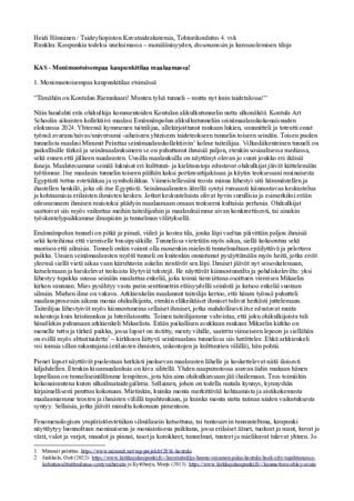 Tässä ekspositiossa (KAS-kuvagalleria) voit tutustua KAS! Kontula Art Schoolin aikuisten kollektiivin jäsenten elokuussa 2024 toteuttamaan Taking Some Space -seinämaalauskokonaisuuteen ja työskentelyprosessiin. Maalauspaikka (Emännänpolun alikulkutunneli) sijaitsee Kontulan ostarin välittömässä läheisyydessä. Ekspositio mukailee taiteellisen toimintani logiikkaa: toiminta sijoittuu konkreettiseen paikkaan, Itä-Helsinkiin ja Kontulaan, kartalle. Maalaamme kartalta tarkemmin rajattua paikkaa, jonka ympärille alkaa kokoontua toiminnan myötä joukko erilaisia ihmisiä, jotka tekevät erilaisia taideteoksia. Nämä ihmiset tekevät samalla myös paikan: ottavat sen haltuun ja määrittelevät sen käytöstä. Eri ihmisten kokemukset paikasta voivat vaihdella ja olla myös ristiriidassa keskenään, jolloin paikkaan kohdistuu erilaisia taiteellisia ja sosiaalisia neuvotteluja. Mitä syvemmälle paikkaan sukeltaa, löytyy sieltä myös kaikki se hiljainen tieto, joka näkyvien teosten pinnan takana on olemassa. Tätä hiljaista tietoa pyrin avaamaan (yhteisö)taiteellisen (toiminta)tutkimukseni avulla. KAS katutaidekartalla näet myös aiemmin Kontula Art School -hankkeen aikana (2019-2025) toteutettujen julkisten ja yhteisöllisten teosten sijainteja ja nimiä. Kuvagallerian prosessikuvien valinnassa olen käyttänyt (tutkimus)eettistä harkintaa. Olen myös halunnut nostaa esille erityisesti erään työparin teosta, joka kärsi maalausprosessin aikana sekä töhrimisestä että kriittisesti keskeneräisen teoksen päälle ennenaikaisesti levitetyn suoja-aineen ja sen poistamisen aiheuttamista vahingoista.