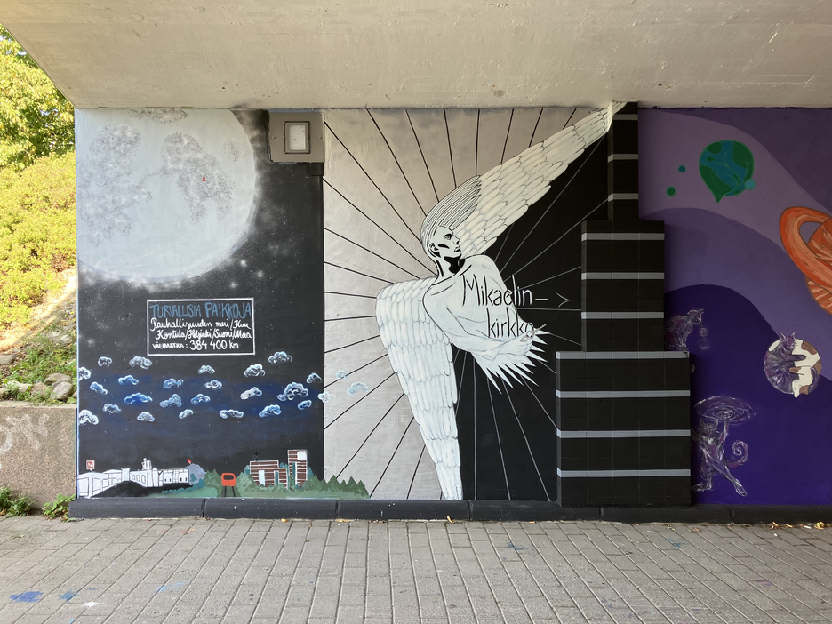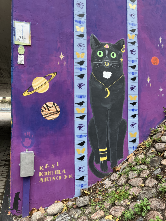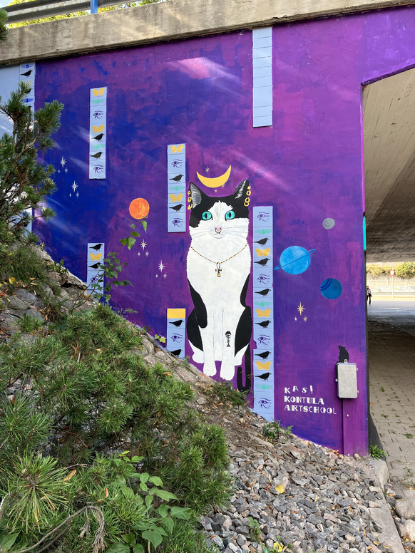 Tässä ekspositiossa (KAS-kuvagalleria) voit tutustua KAS! Kontula Art Schoolin aikuisten kollektiivin jäsenten elokuussa 2024 toteuttamaan Taking Some Space -seinämaalauskokonaisuuteen ja työskentelyprosessiin. Maalauspaikka (Emännänpolun alikulkutunneli) sijaitsee Kontulan ostarin välittömässä läheisyydessä. Ekspositio mukailee taiteellisen toimintani logiikkaa: toiminta sijoittuu konkreettiseen paikkaan, Itä-Helsinkiin ja Kontulaan, kartalle. Maalaamme kartalta tarkemmin rajattua paikkaa, jonka ympärille alkaa kokoontua toiminnan myötä joukko erilaisia ihmisiä, jotka tekevät erilaisia taideteoksia. Nämä ihmiset tekevät samalla myös paikan: ottavat sen haltuun ja määrittelevät sen käytöstä. Eri ihmisten kokemukset paikasta voivat vaihdella ja olla myös ristiriidassa keskenään, jolloin paikkaan kohdistuu erilaisia taiteellisia ja sosiaalisia neuvotteluja. Mitä syvemmälle paikkaan sukeltaa, löytyy sieltä myös kaikki se hiljainen tieto, joka näkyvien teosten pinnan takana on olemassa. Tätä hiljaista tietoa pyrin avaamaan (yhteisö)taiteellisen (toiminta)tutkimukseni avulla. KAS katutaidekartalla näet myös aiemmin Kontula Art School -hankkeen aikana (2019-2025) toteutettujen julkisten ja yhteisöllisten teosten sijainteja ja nimiä. Kuvagallerian prosessikuvien valinnassa olen käyttänyt (tutkimus)eettistä harkintaa. Olen myös halunnut nostaa esille erityisesti erään työparin teosta, joka kärsi maalausprosessin aikana sekä töhrimisestä että kriittisesti keskeneräisen teoksen päälle ennenaikaisesti levitetyn suoja-aineen ja sen poistamisen aiheuttamista vahingoista.
