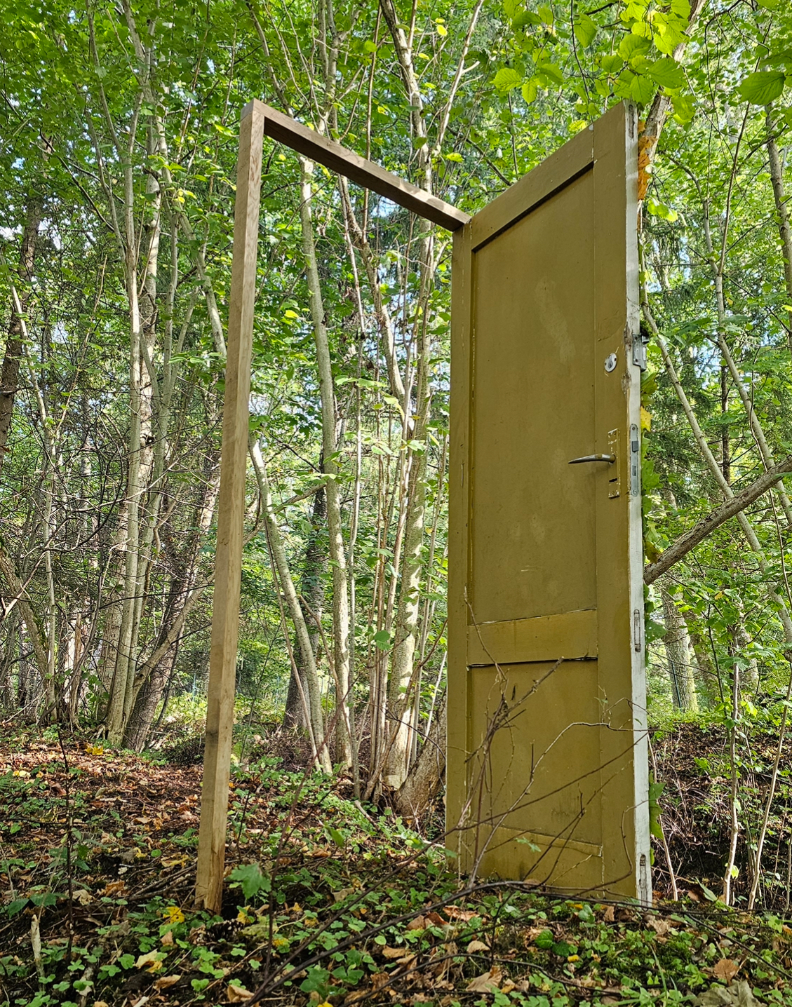 Escolhi, para este propósito, uma porta amarela que, para mim, se tornou um símbolo pictórico de Kuldiga. Um amarelo suave, quase pálido, que trazia consigo uma certa beleza melancólica, como se estivesse imobilizada no tempo. A porta, sustentada por um suporte em forma de L, foi posicionada de modo a permanecer sempre aberta, como um convite silencioso à passagem, à entrada num outro mundo.