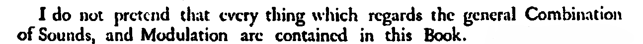 I'm always puzzled when reading "It would have swelled this Book too much". Does he mean it's theoretically doable? He does not say "impossible" afterall... what if the composer wasn't getting the right compensation for the job or what if he was hoping to keep the rest for further volumes eventually never published?