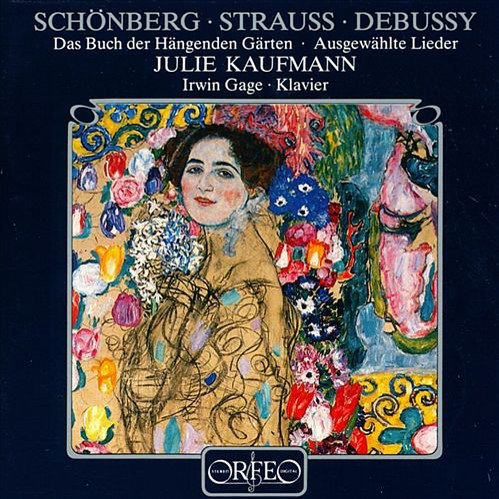 A section of Gustav Klimt’s Damenbildnis from 1917/18 dominates the front cover of the CD. The composers’ names above it are most prominent, whereas the pianist’s name is written in the smallest font size, though all names appear in equal size on the back cover. The booklet contains an introductory text about the songs’ genesis with observations about musical, textual and psychological aspects, biographical notes for Kaufmann and Gage including portrait photos, and the song texts with English and French translations.